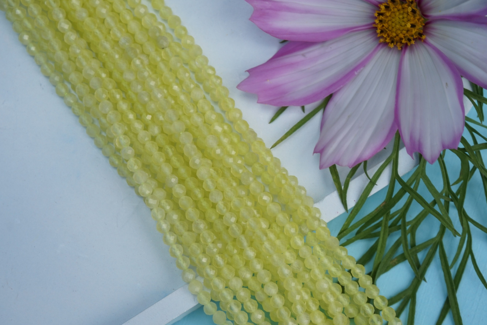 Kocie oko / kula fasetowana / 3mm / żółty / ok 120 szt / 1 sznur