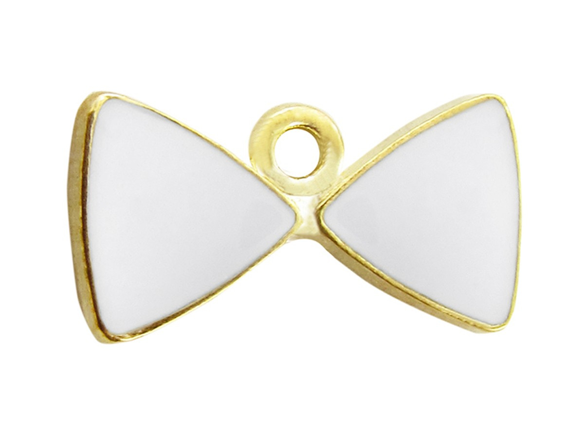 Kokardka SweetCharm™ / zawieszka charms / 8x16mm / kolor złoto-biały / otwór 1.6mm / 1szt
