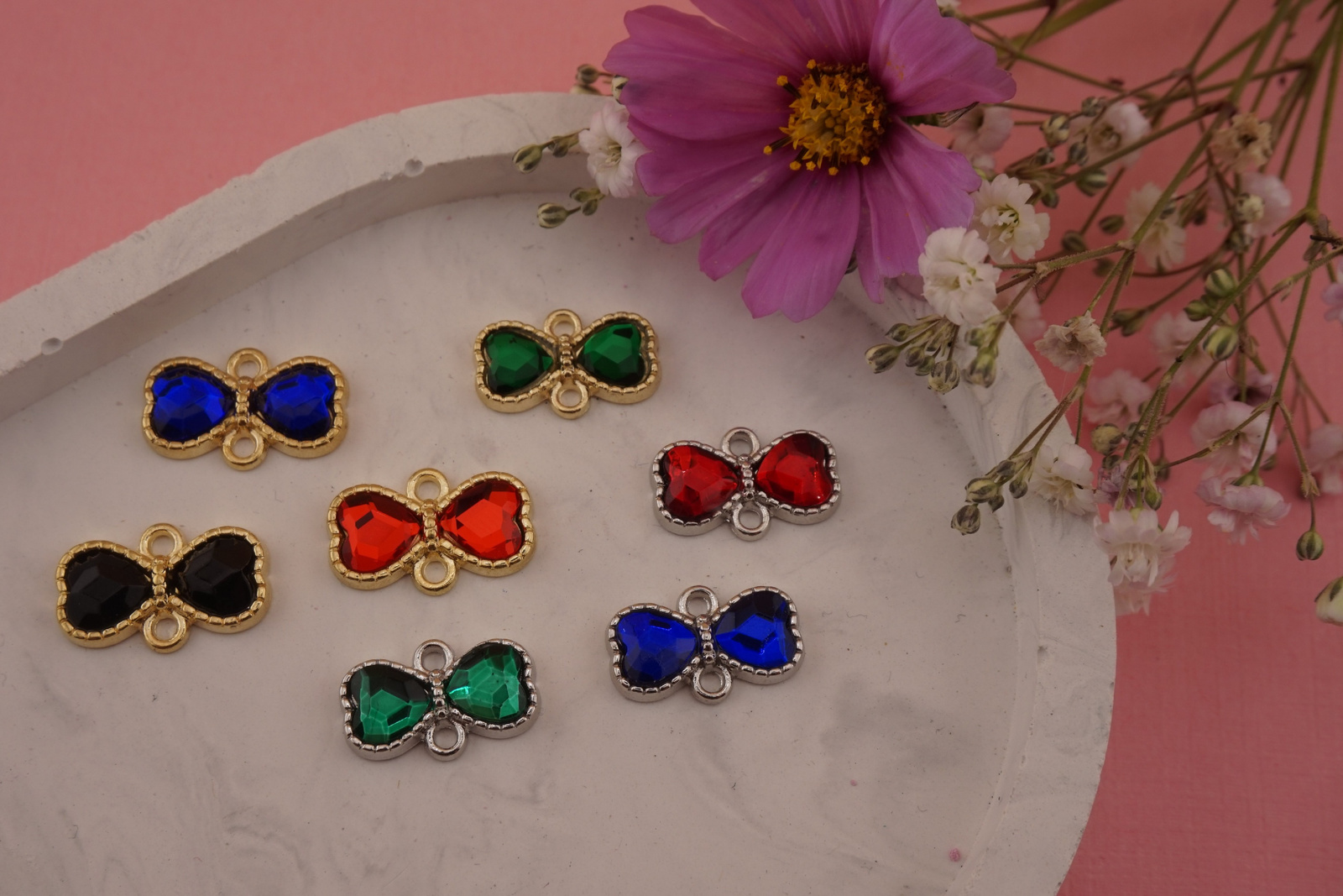 Łączniki metalowe kokardki z kryształkiem to prosty sposób, by Twoja biżuteria nabrała blasku i elegancji. Idealne do projektów handmade, które mają być pełne uroku i szyku.