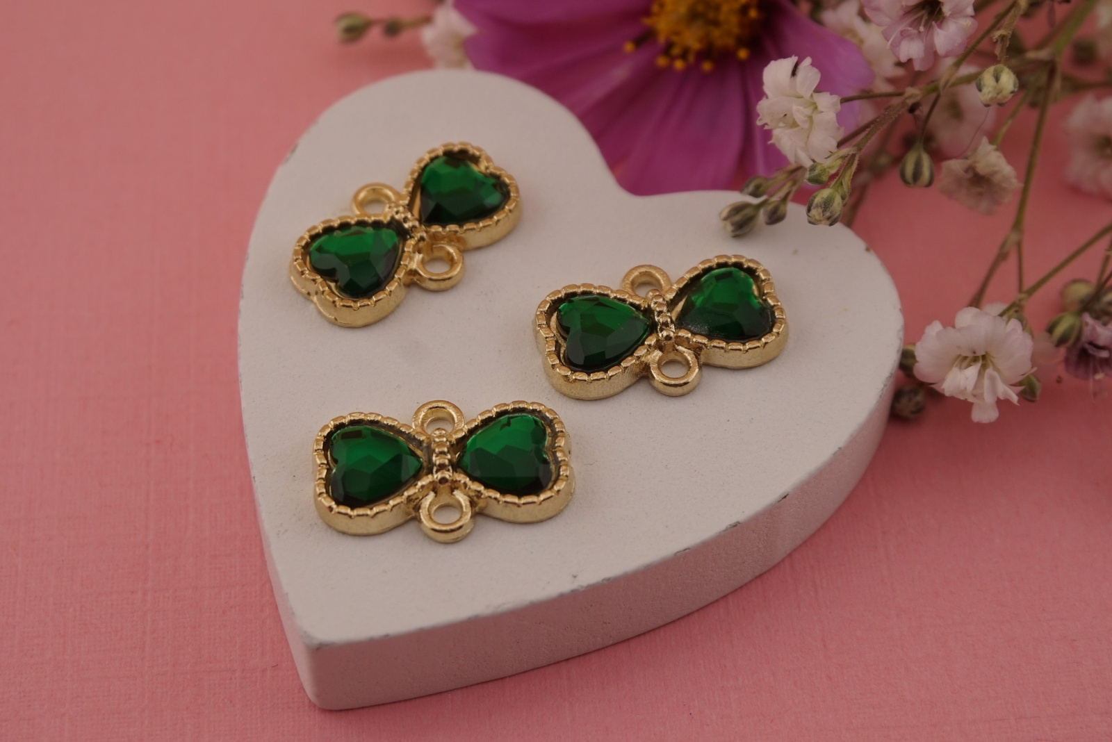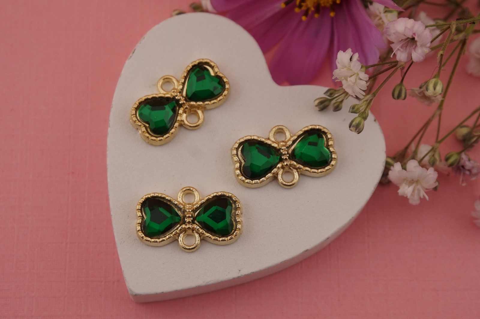 Łączniki kokardki z kryształkiem świetnie sprawdzą się jako centralny element bransoletki, elegancki akcent w naszyjniku lub ozdobne wykończenie kolczyków. Dodadzą biżuterii lekkości i kobiecego uroku.