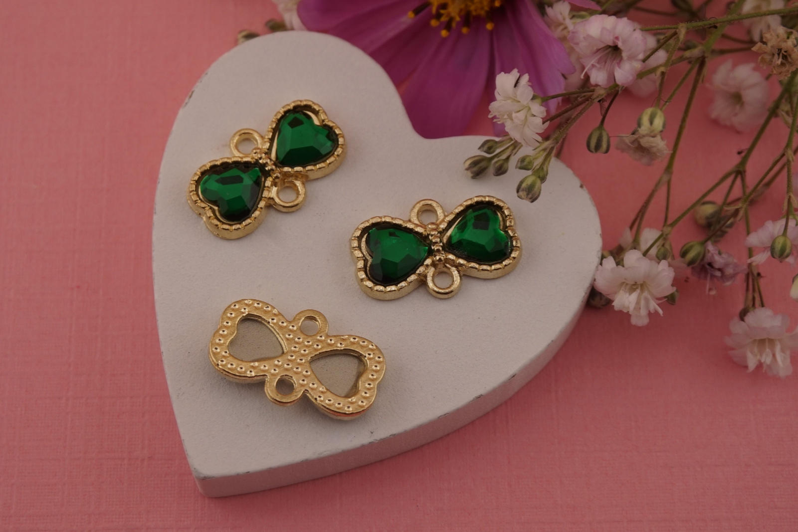 Łączniki metalowe kokardki z kryształkiem to prosty sposób, by Twoja biżuteria nabrała blasku i elegancji. Idealne do projektów handmade, które mają być pełne uroku i szyku.