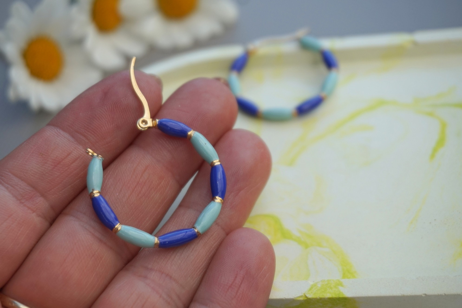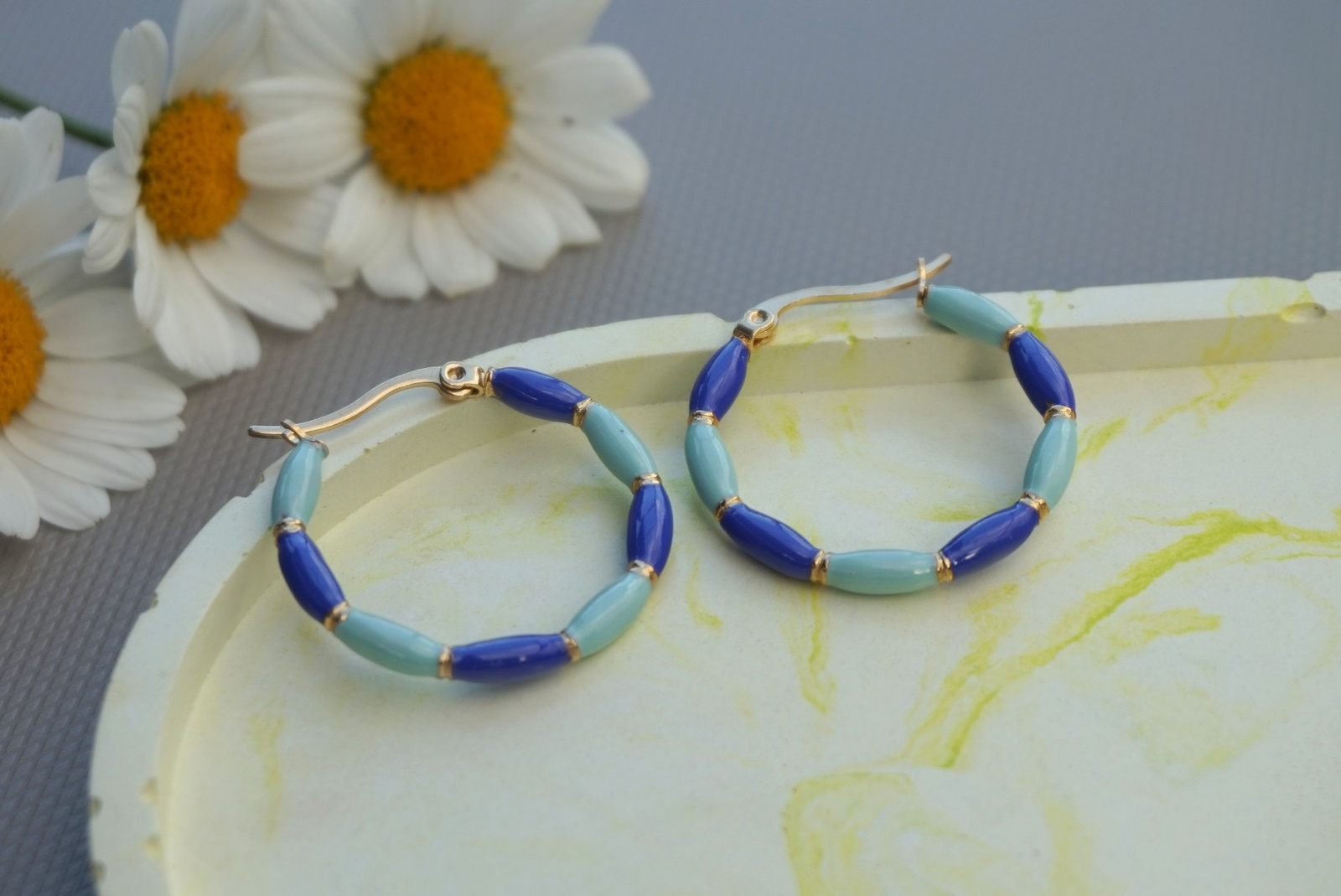 Kolczyki koła emaliowane / stal chirurgiczna / 30mm / złoty-niebieski-fioletowy/ 2szt