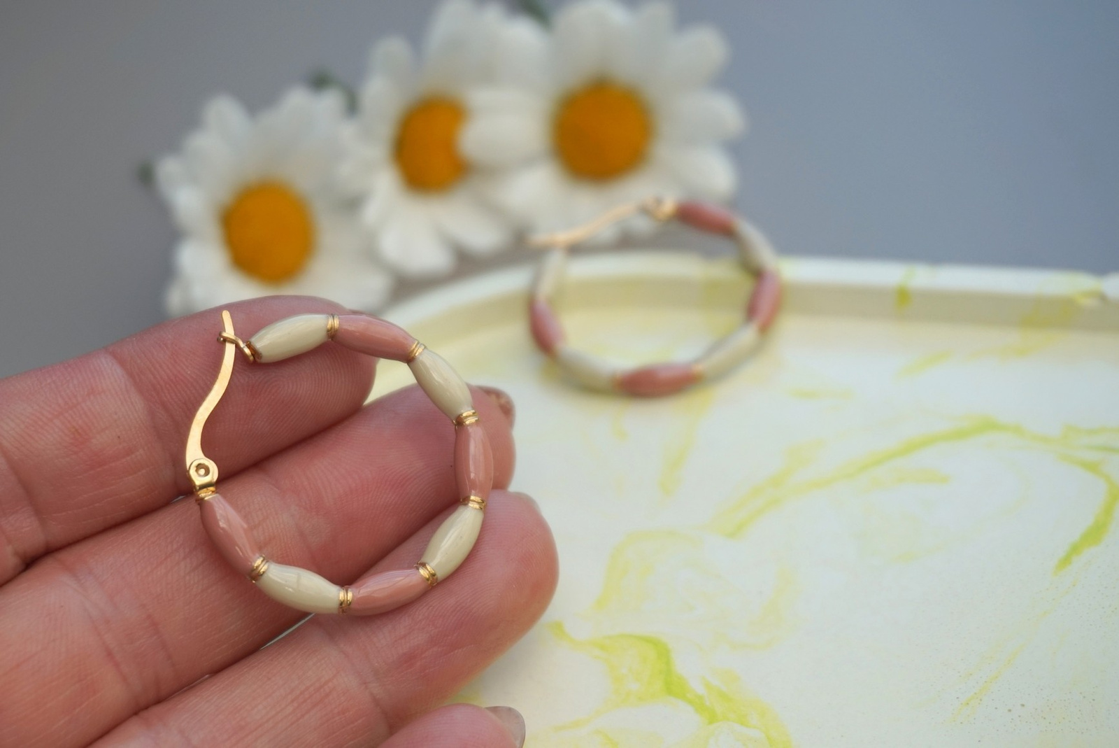 Kolczyki koła emaliowane / stal chirurgiczna / 30mm / złoty-różowy-kremowy / 2szt