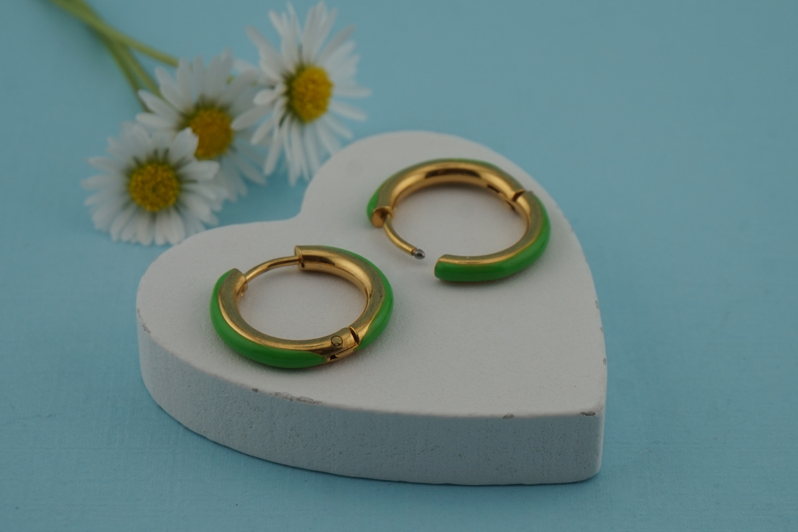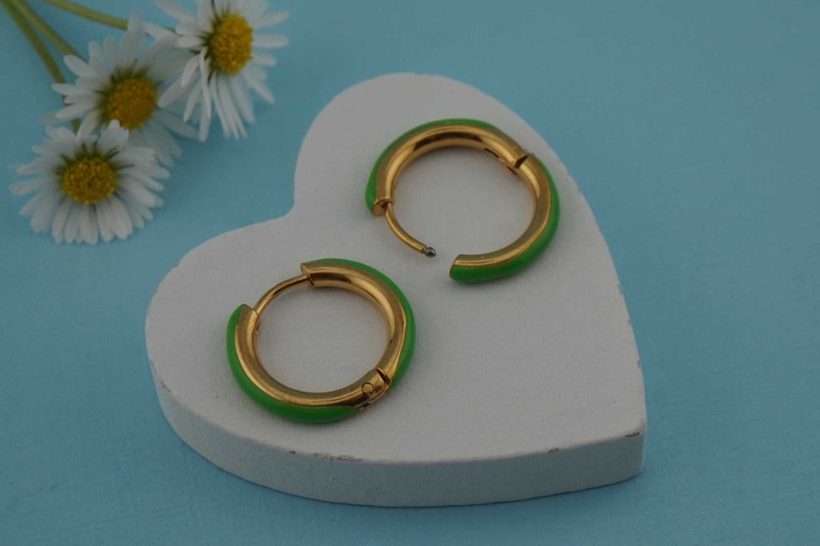 Kolczyki kółka / stal chirurgiczna / 12mm / złoty, zielony / 2szt