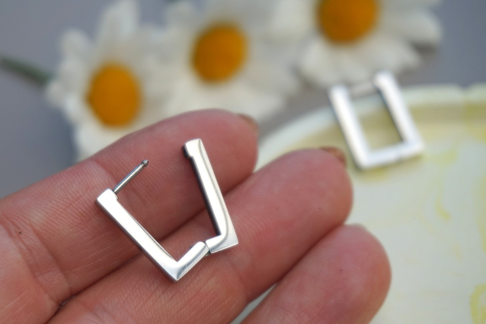 Kolczyki prostokąt / stal chirurgiczna / 12x17,5mm / srebrny / 2szt