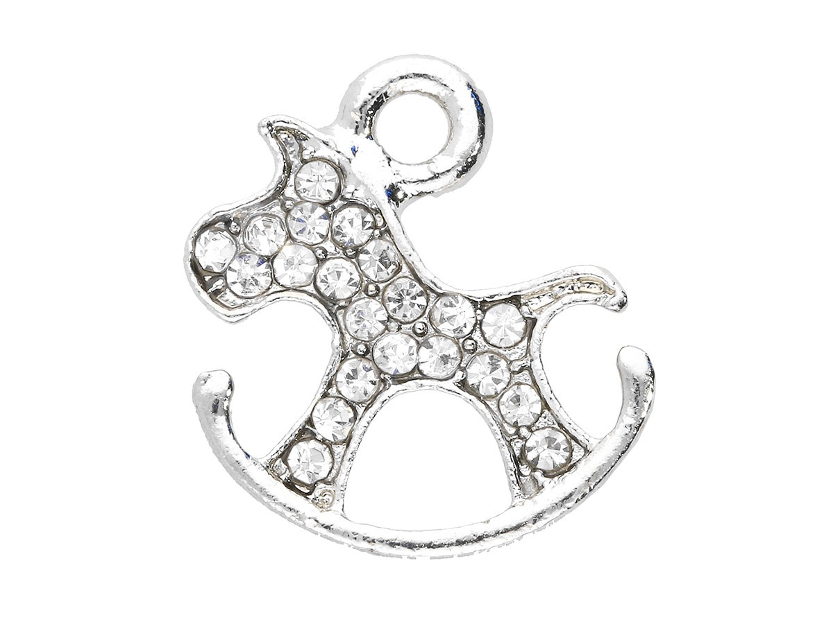 Koń na biegunach Glamm™ / zawieszka charms / 20 cyrkonii / 15x14x2.5mm / kolor srebrny / 1szt