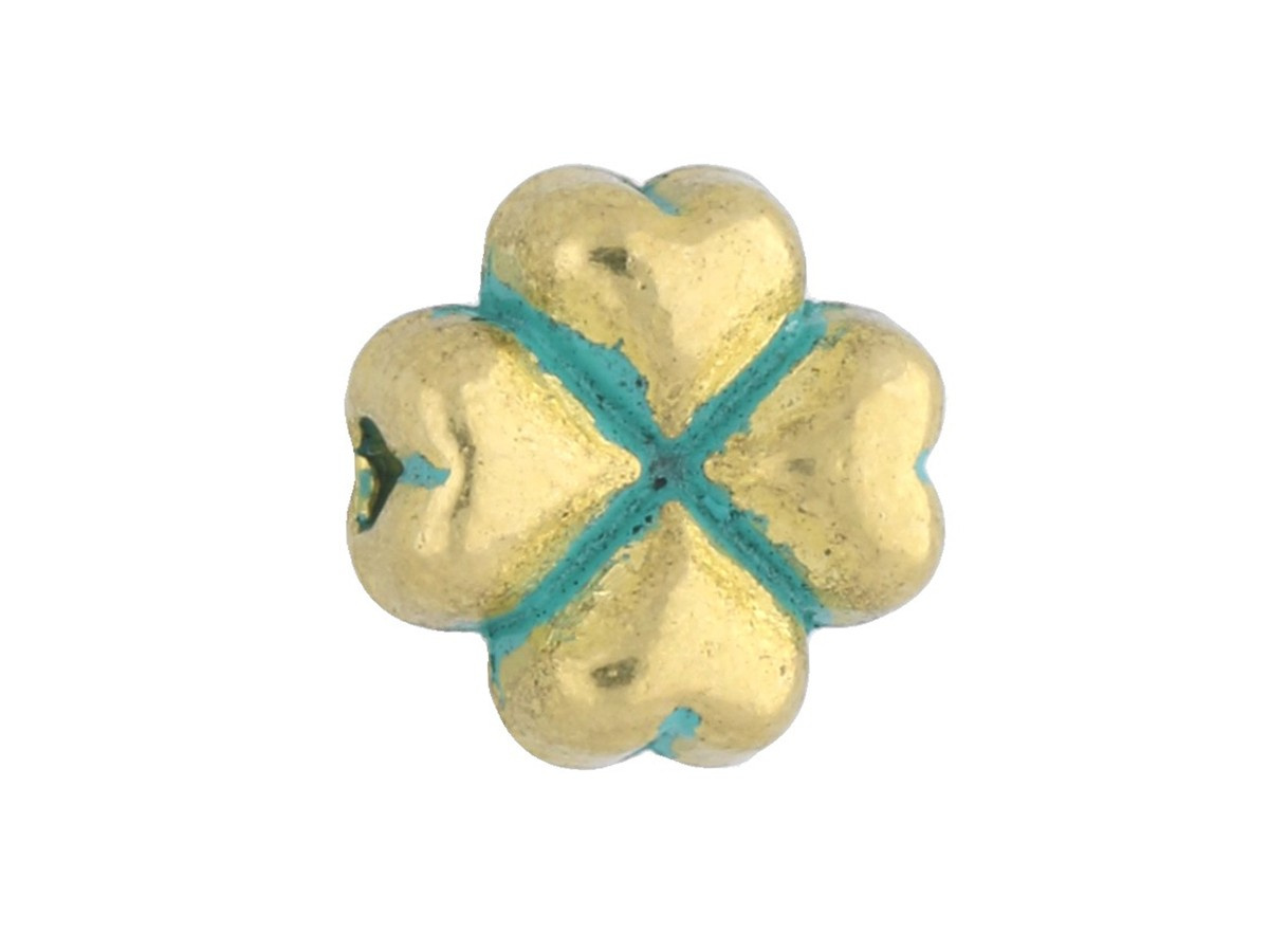 Koniczynka / przekładka / 8x8x4mm / antyczny złoty-Aqua / otwór 1.5mm / 5szt