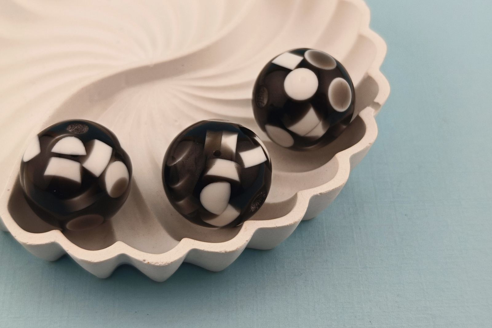 Koraliki akrylowe, czarno-białe / zatopione pastylki / kula / 24mm / otwór 3mm / 1szt