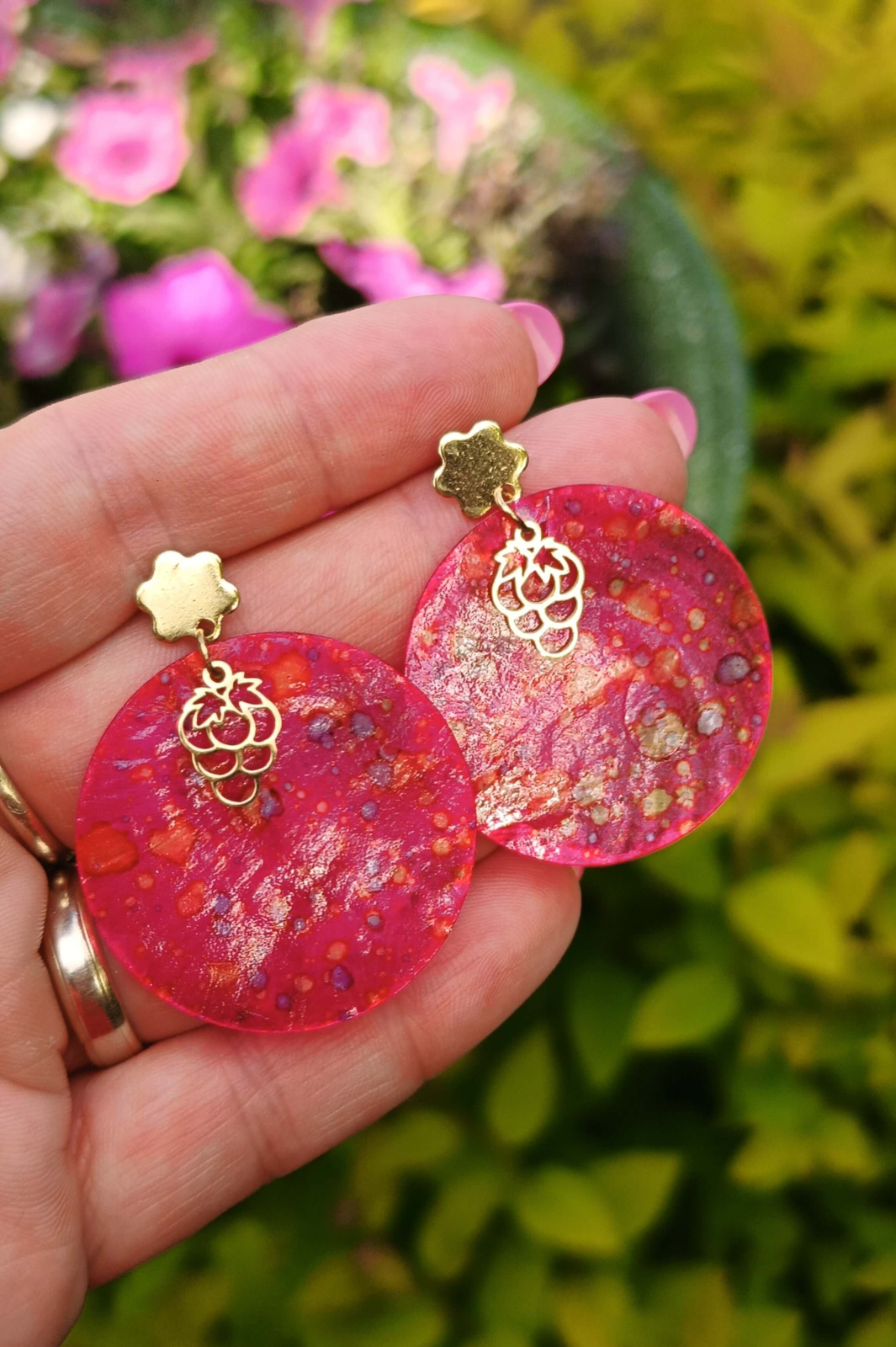 Opinie o Koraliki masa perłowa, koło / różowo-pomarańczowy / 45x1mm / otwór 2mm / 2szt