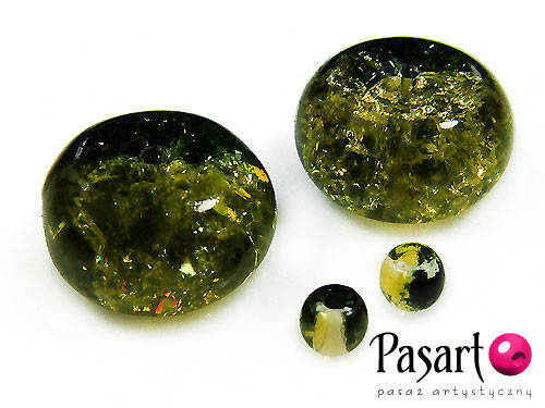 Koraliki szklane crackle, czarno-oliwkowe / oponka 14x9mm / kulka 4mm / otwór 1mm / 6szt