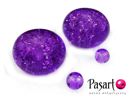 Koraliki szklane crackle, fioletowe / oponka 14x9mm / kulka 4mm / otwór 1mm / 6szt