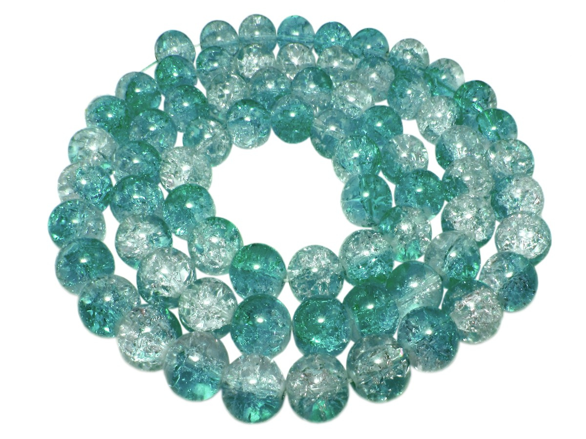 Koraliki szklane crackle / kula / turkusowo-biały / 6mm / otwór 1mm / 1sznur / 145 koralików