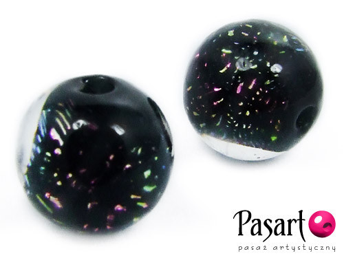 Koraliki szklane iryzowane, czarne / kula / 12mm / 2mm / 1szt