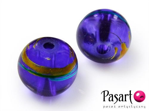 Koraliki szklane malowane, fioletowe / kula / 8mm / otwór 1mm / 16szt