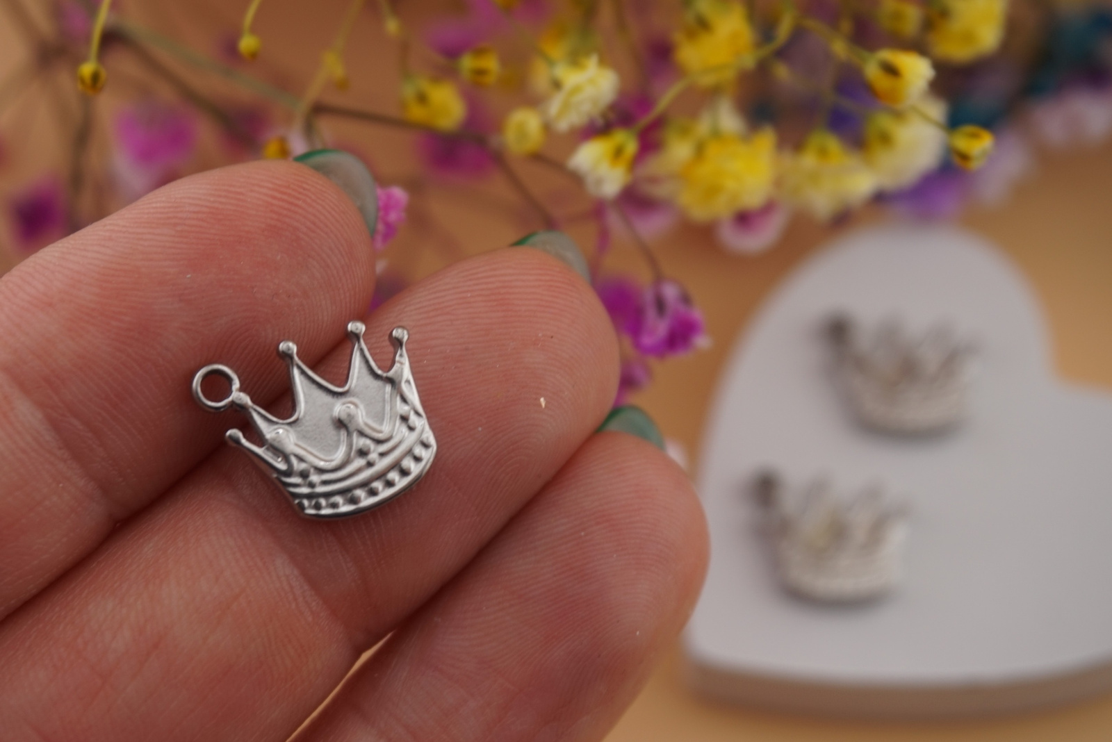 Korona / zawieszka ze stali chirurgicznej / 13x14mm / srebrny / 1szt