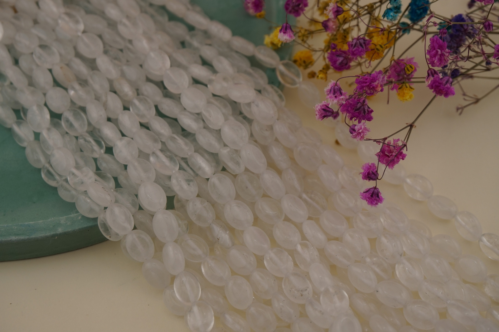 Owalne kamienie z kwarcu przezroczystego doskonale sprawdzają się w naszyjnikach, bransoletkach i kolczykach handmade. Łączą się harmonijnie zarówno ze stalą chirurgiczną, jak i srebrem, złotem, kolorowymi kamieniami oraz pastelami.