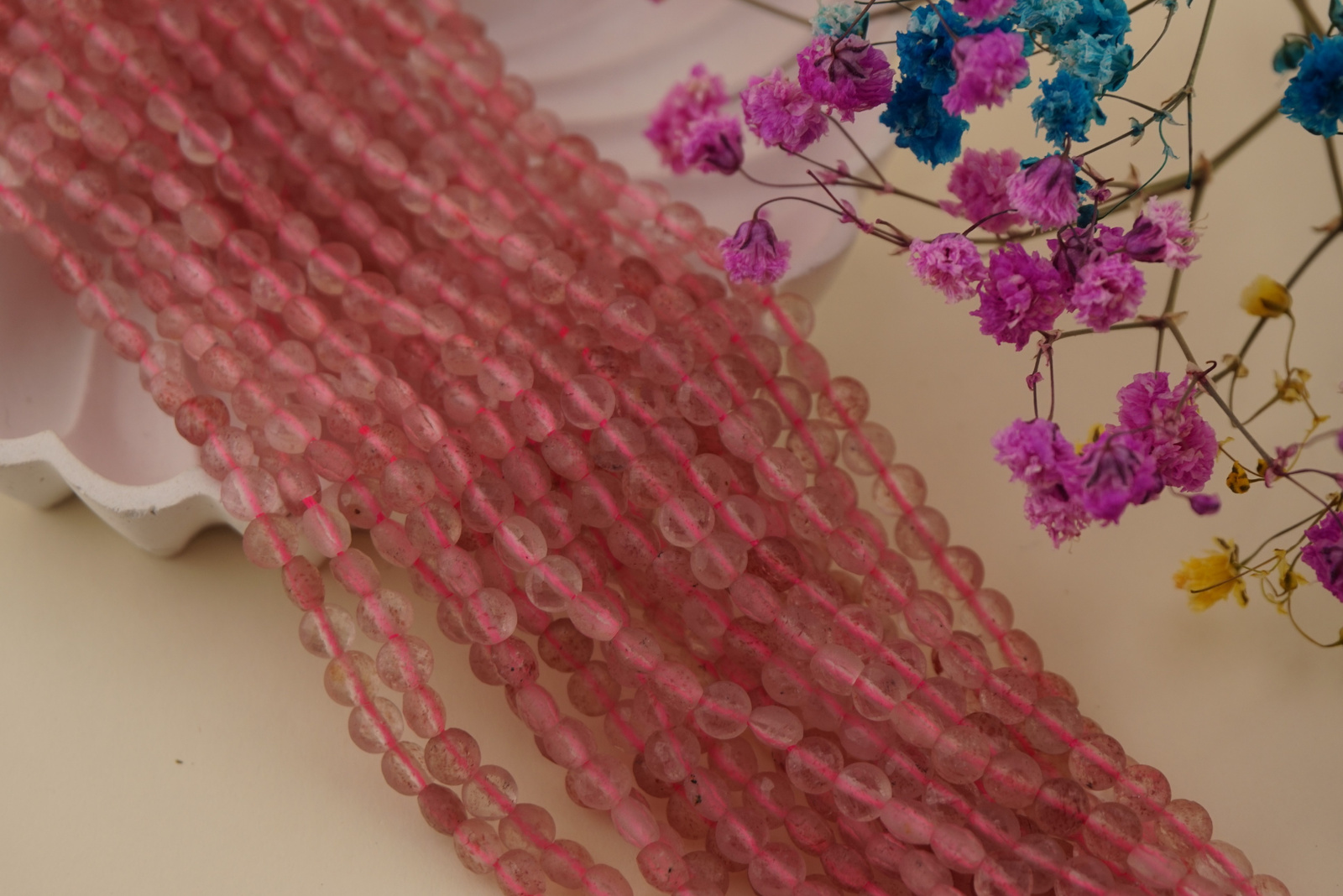 Kwarc Truskawkowy / pastylka fasetowana / 4mm / sznur / około 90szt