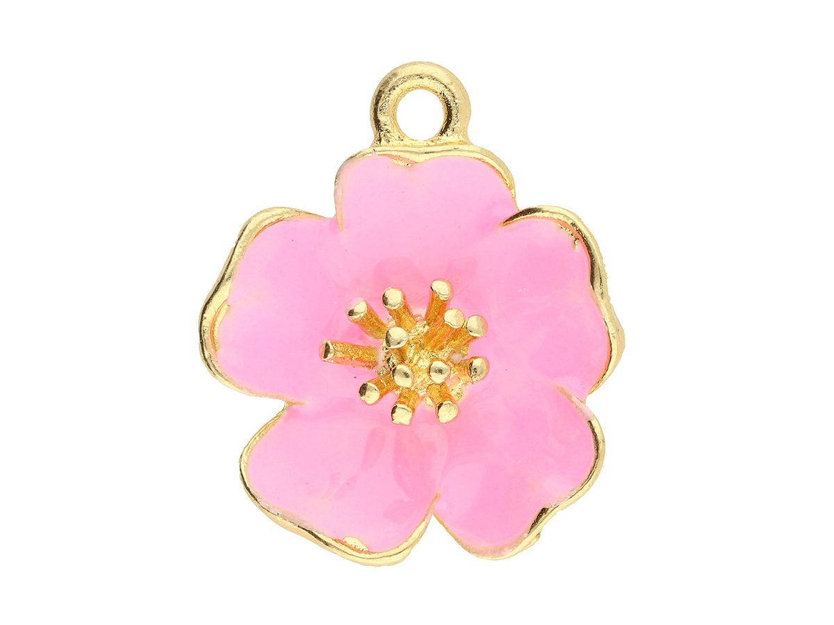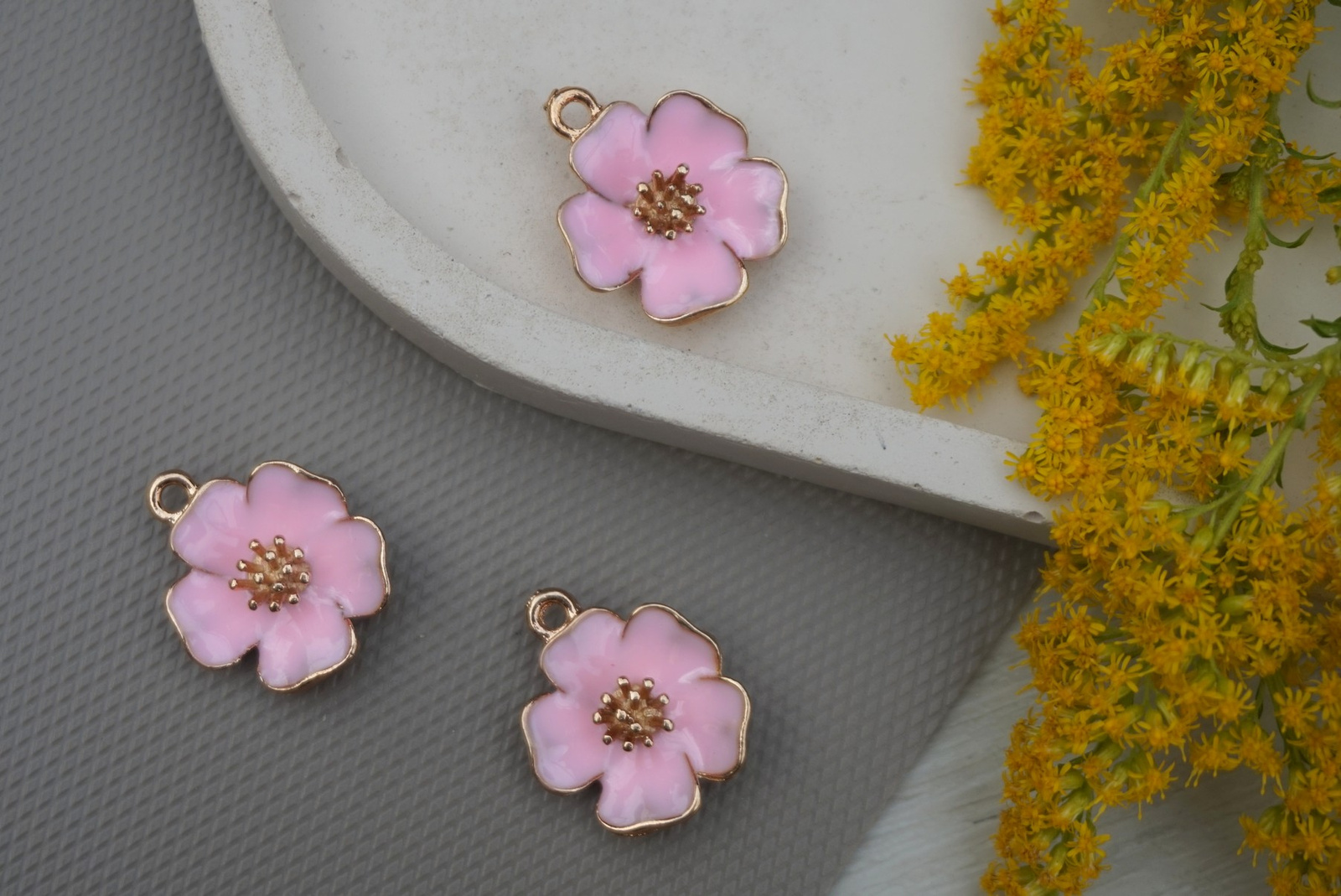 Kwiat / zawieszka / 23x20mm / metal / złoty, różowy / 1szt