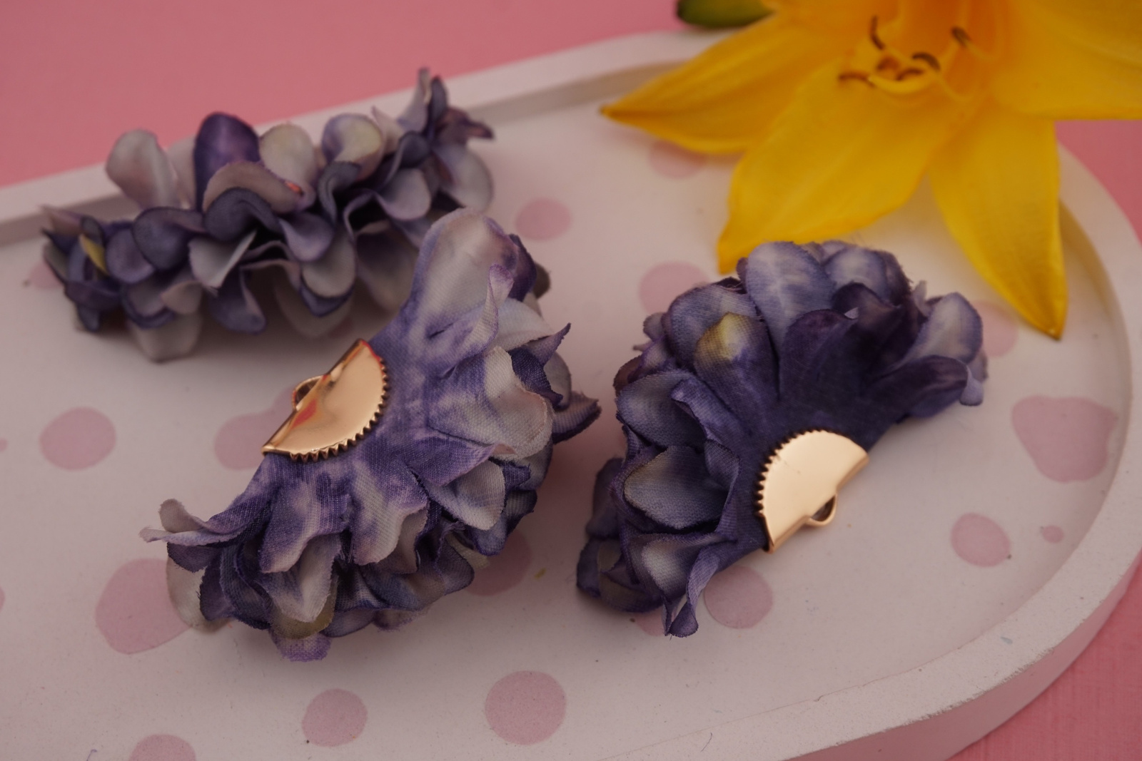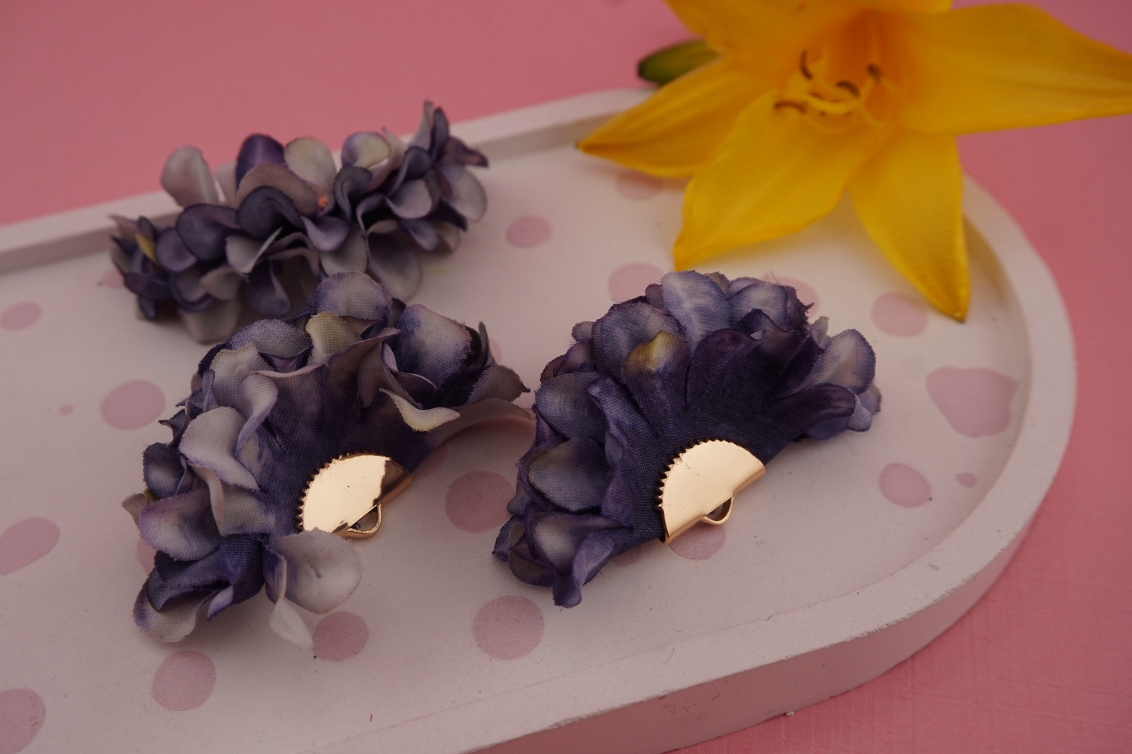 Kwiatek ozdobny / tkanina impregnowana, metal antyalergiczny/ atramentowy / ok 50x25mm / 1szt
