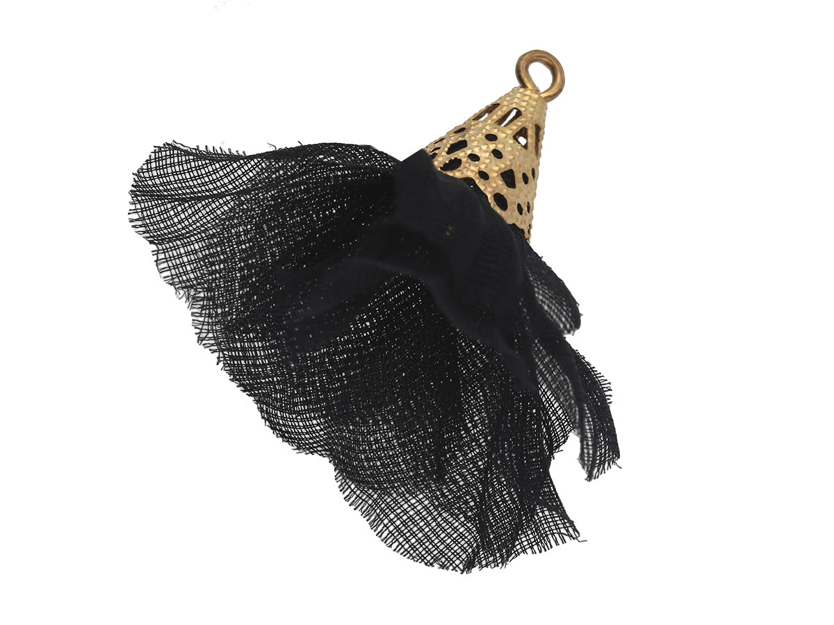 Kwiatek tiulowy / z ażurową końcówką / 30mm / KC Gold, czarny / 2szt