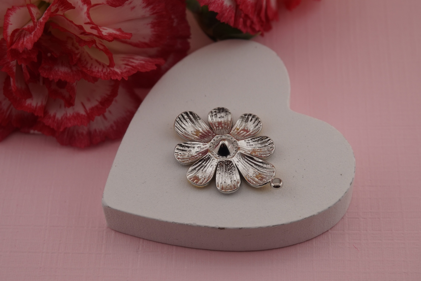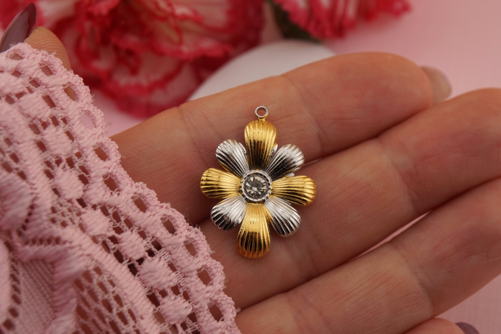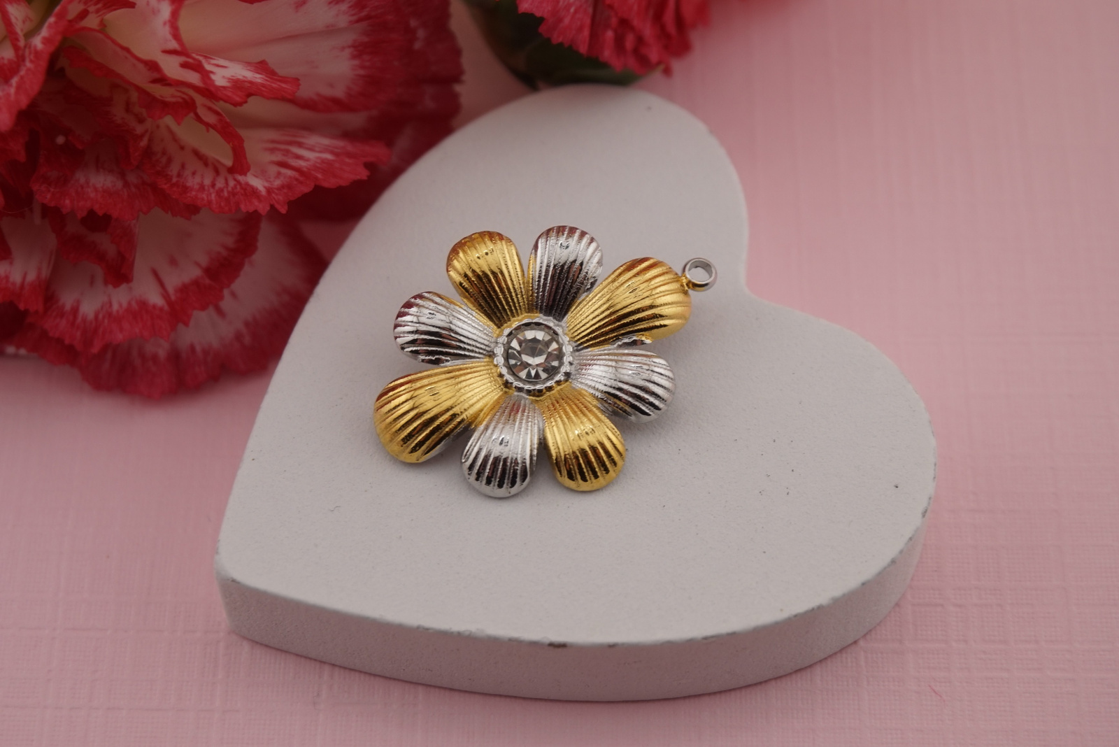 Kwiatek złoto - srebrny / zawieszka stal chirurgiczna / 26x19mm / 1szt