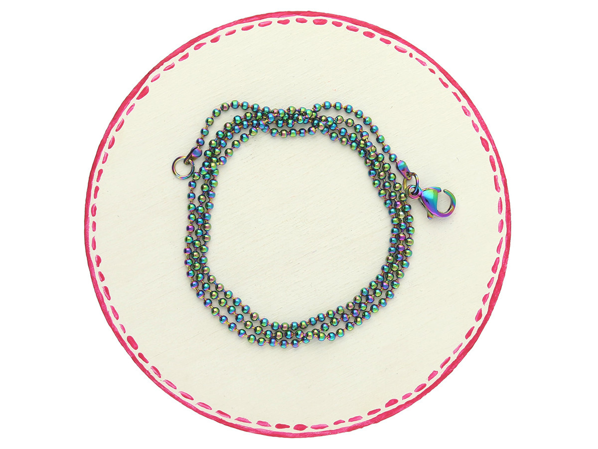 Łańcuszek kulkowy z karabińczykiem / stal nierdzewna / 1.5mm / rainbow / 45cm