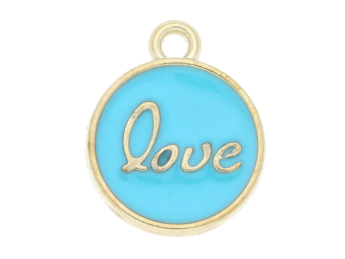 Love SweetCharm™ / zawieszka charms / 15x13x2.5mm / kolor turkusowy, złoty / 2szt