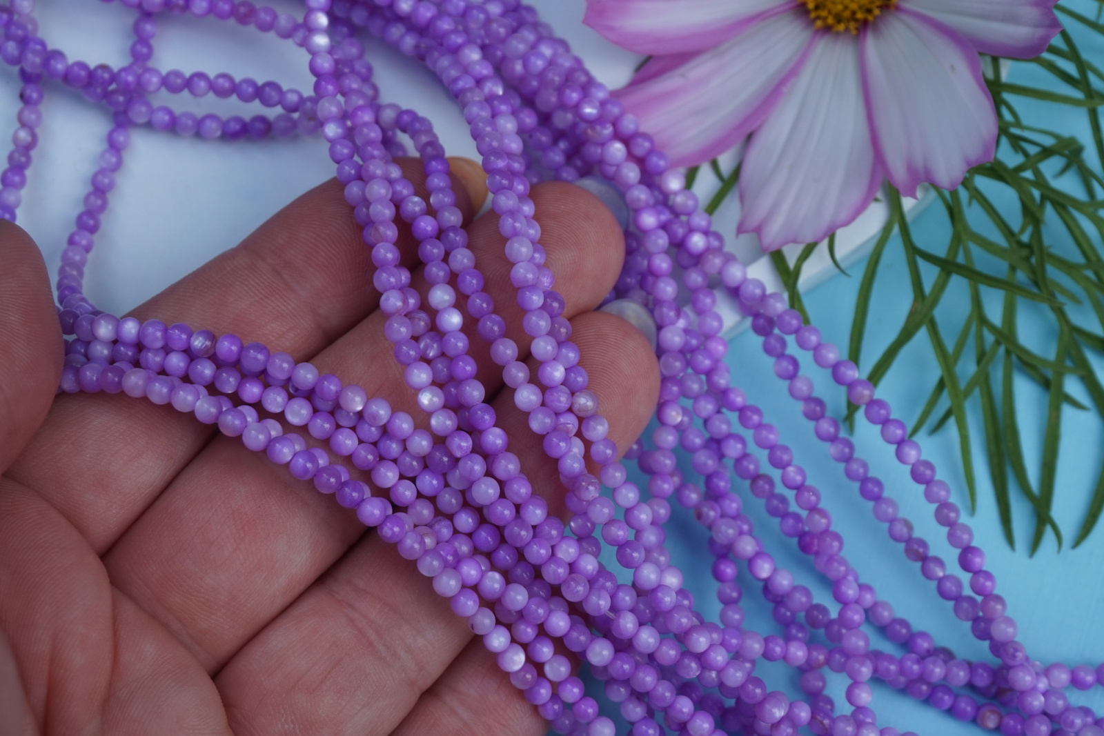 Muszla / sznur koralików / kula / 3mm / fioletowy / około 130szt