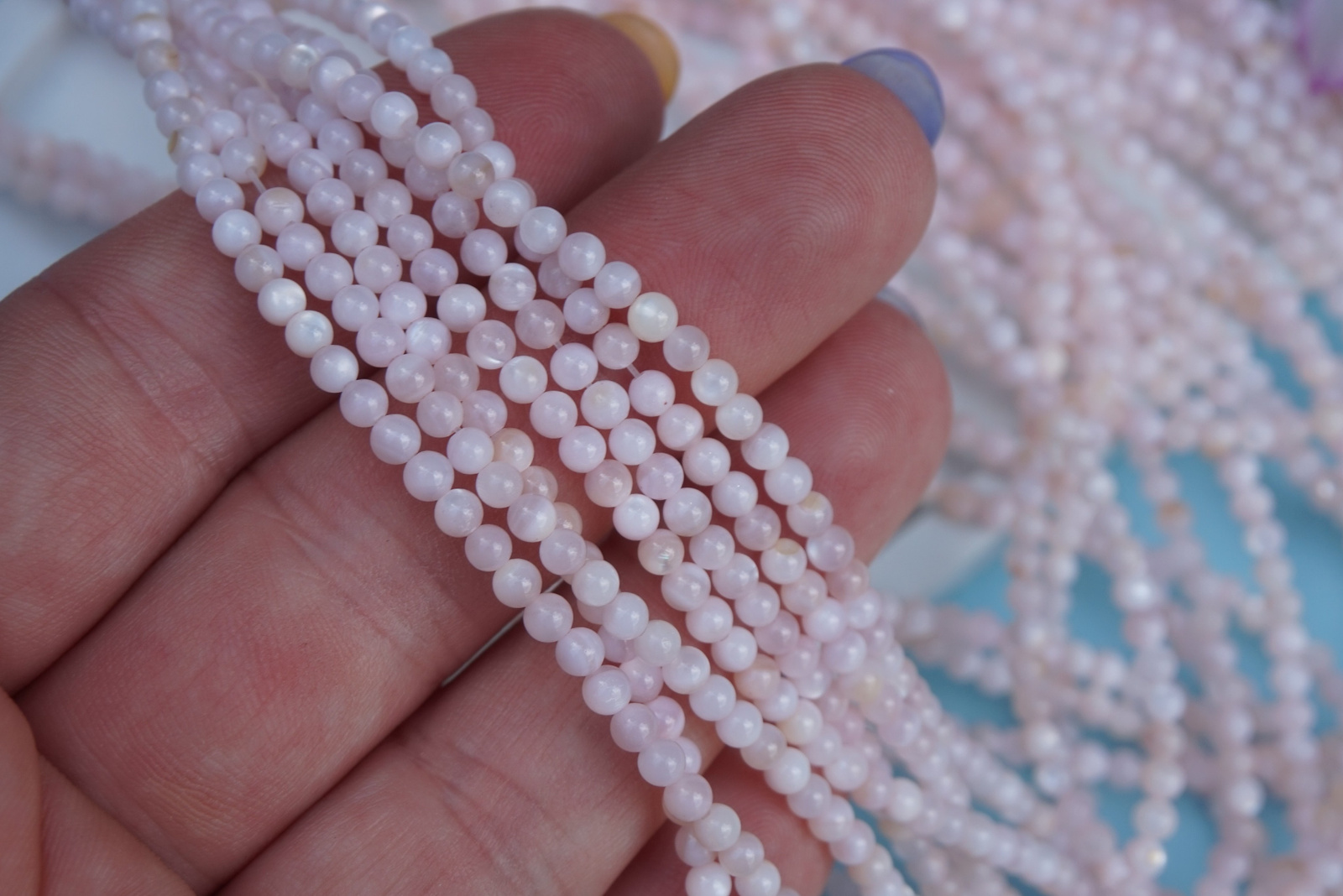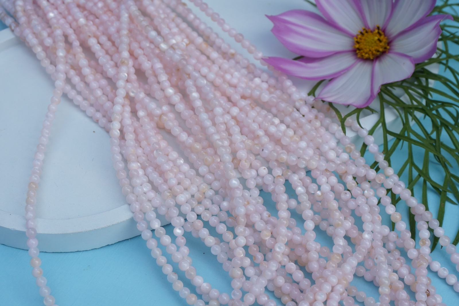 Muszla / sznur koralików / kula / 3mm / różowy / około 130szt