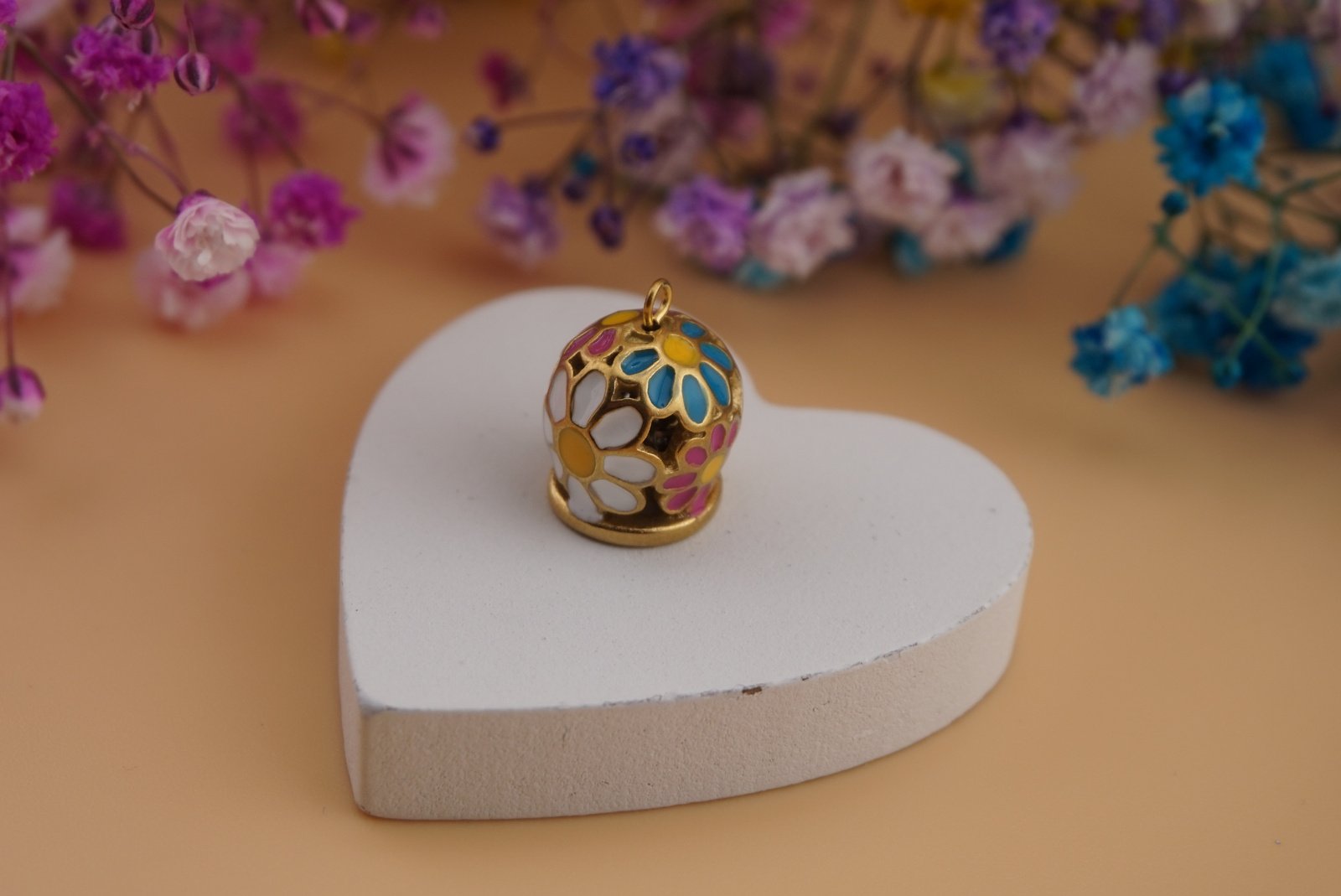 Ozdobny dzwonek / zawieszka ze stali chirurgicznej / 16,5x13mm / złoty / 1szt