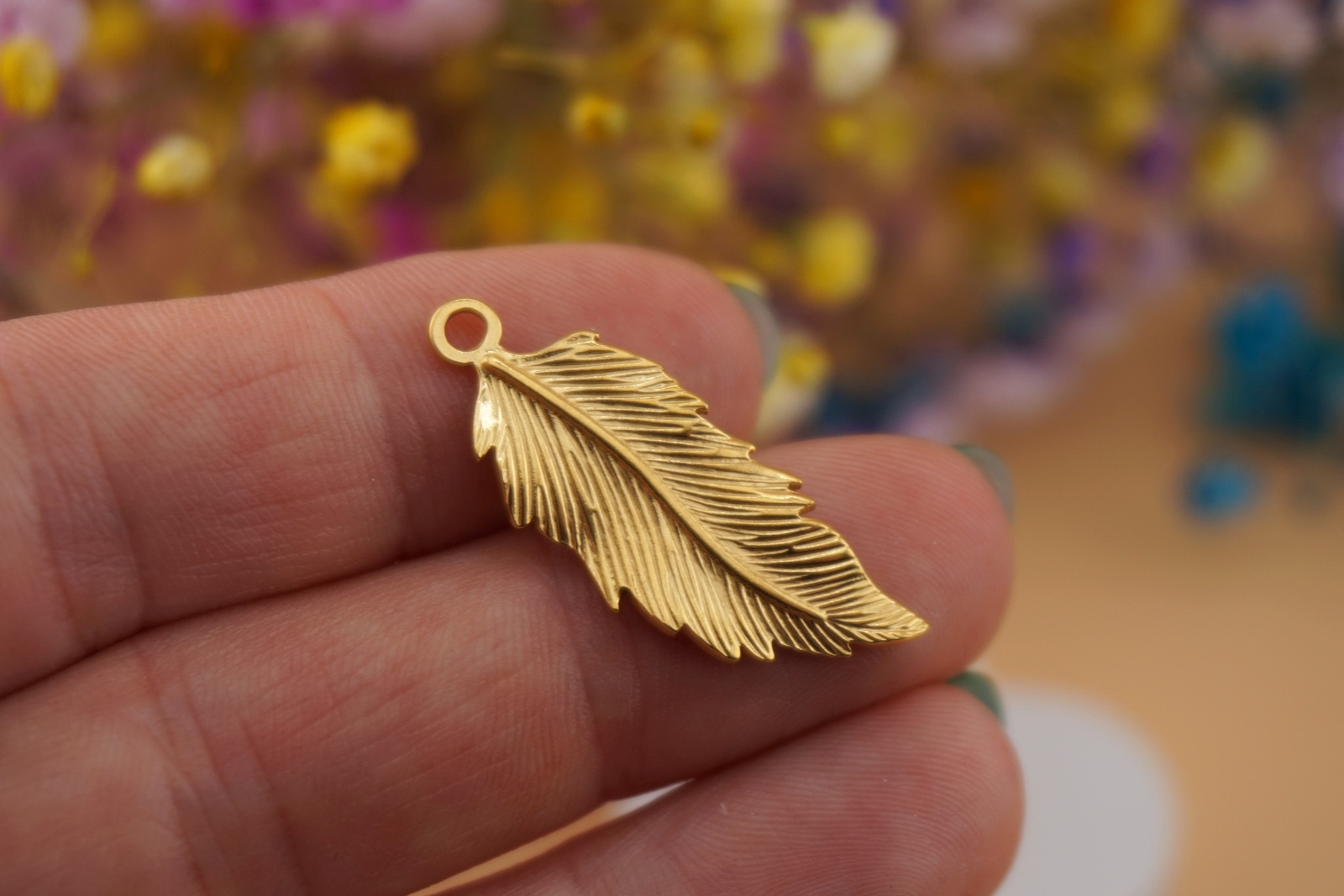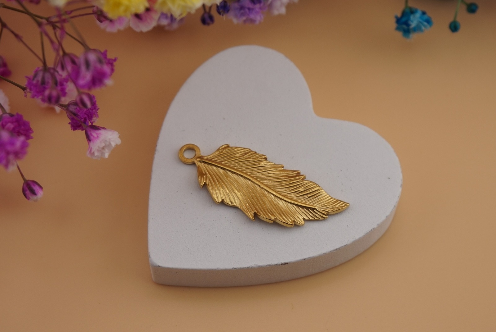 Pióro / zawieszka ze stali chirurgicznej / 13x32mm / złoty / 1szt