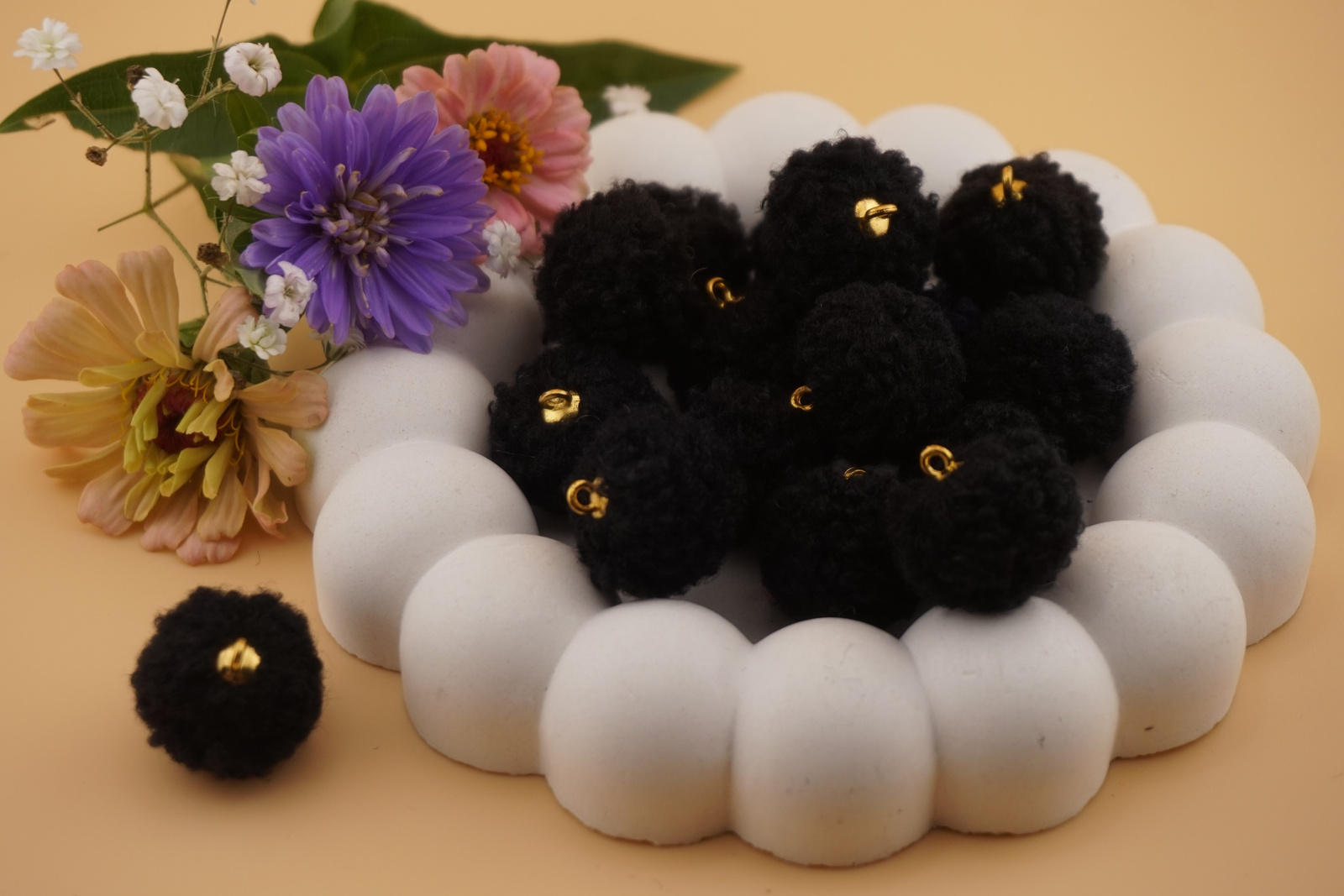 Zawieszki pompony z metalowym uchwytem to lekkie i efektowne ozdoby, które dodają biżuterii miękkości i koloru. Dzięki praktycznemu uchwytowi łatwo je zamocować w kolczykach, bransoletkach czy naszyjnikach handmade.