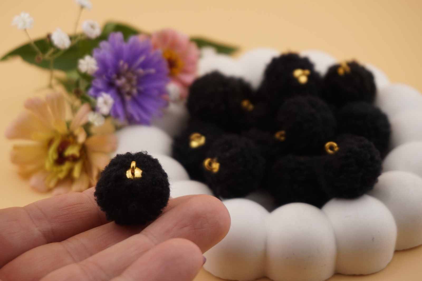 Zawieszki pompony z metalowym uchwytem to prosty sposób na dodanie lekkości, koloru i przyjemnej w dotyku faktury do biżuterii handmade.