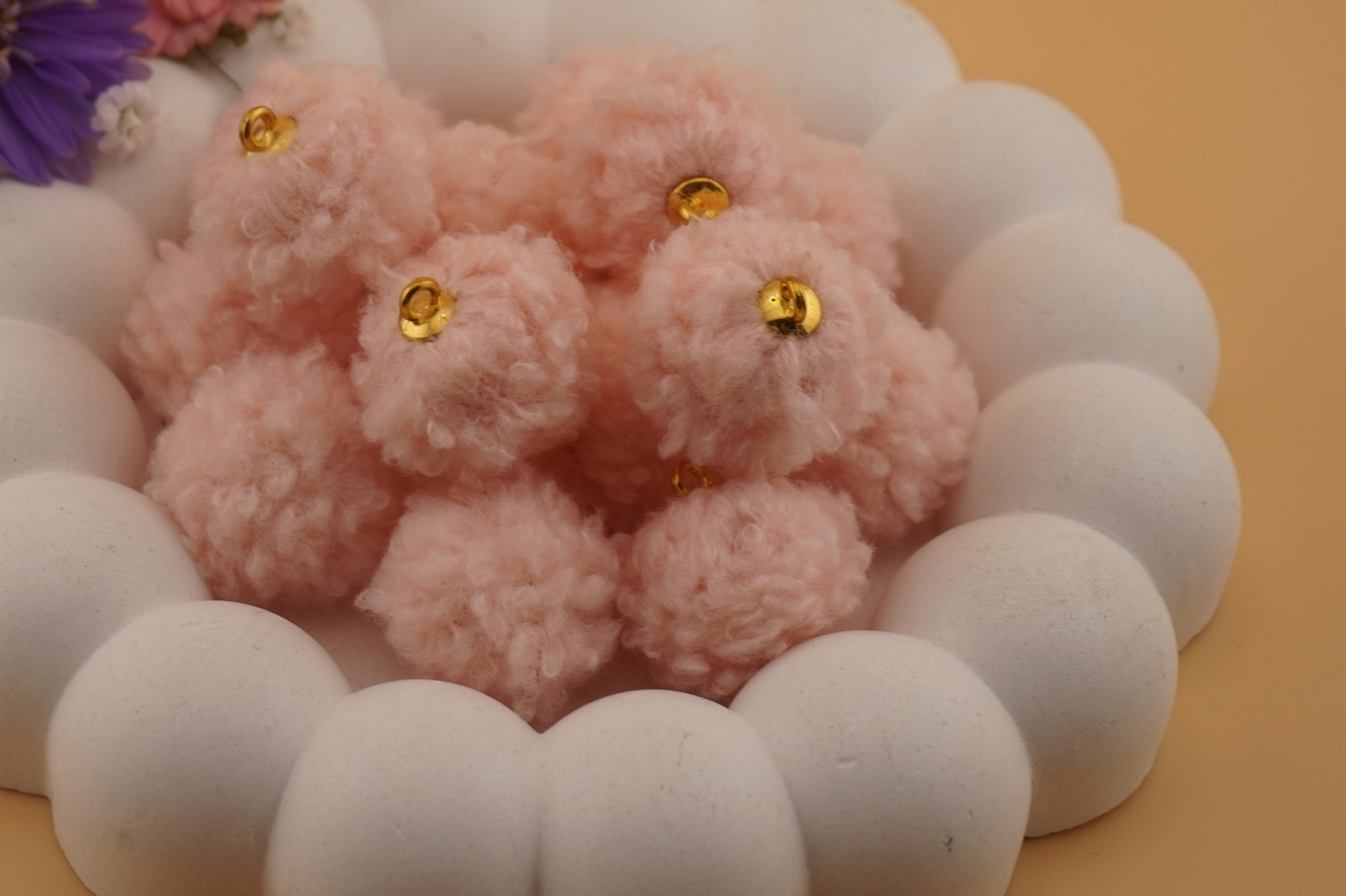 Zawieszki pompony z metalowym uchwytem to lekkie i efektowne ozdoby, które dodają biżuterii miękkości i koloru. Dzięki praktycznemu uchwytowi łatwo je zamocować w kolczykach, bransoletkach czy naszyjnikach handmade.