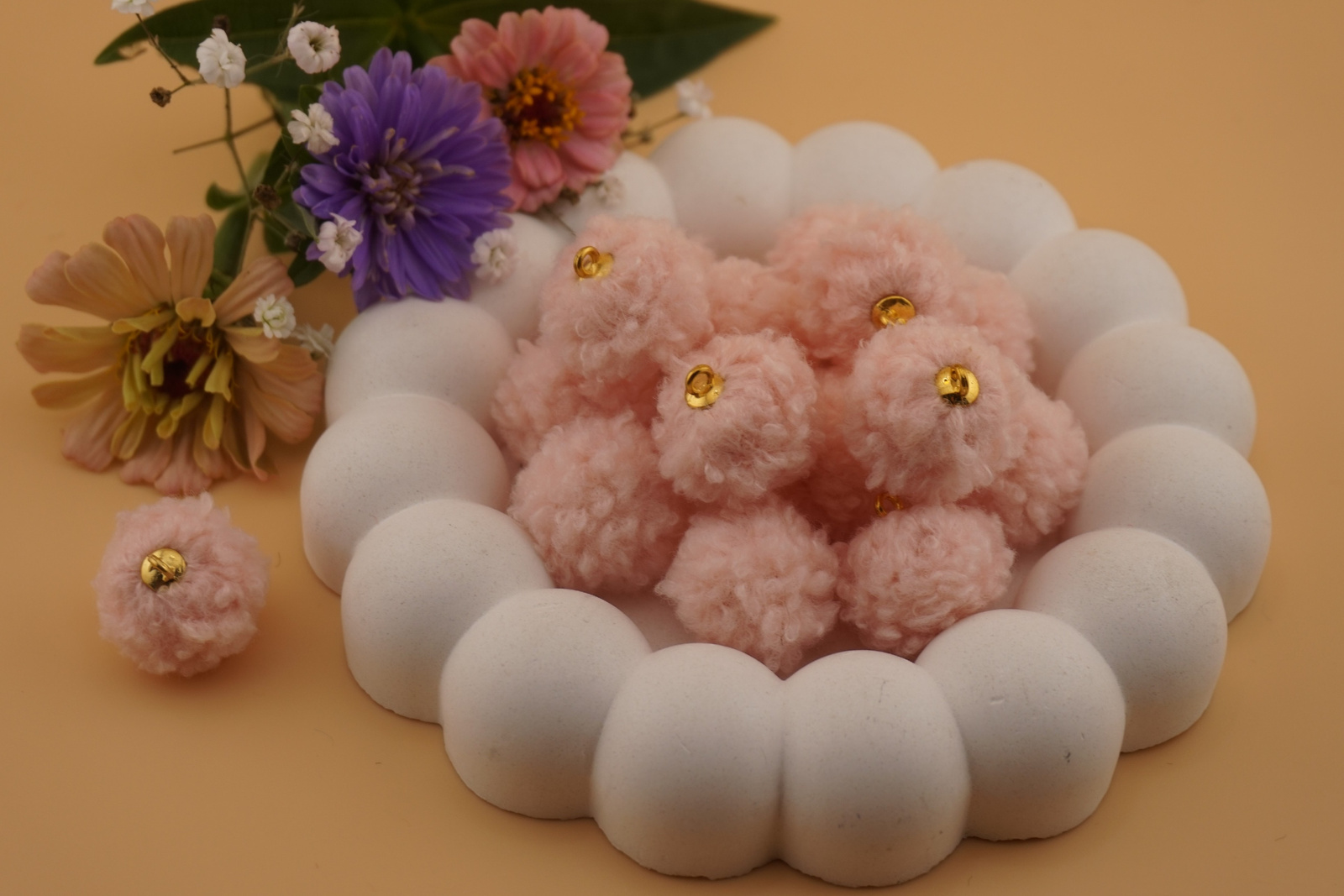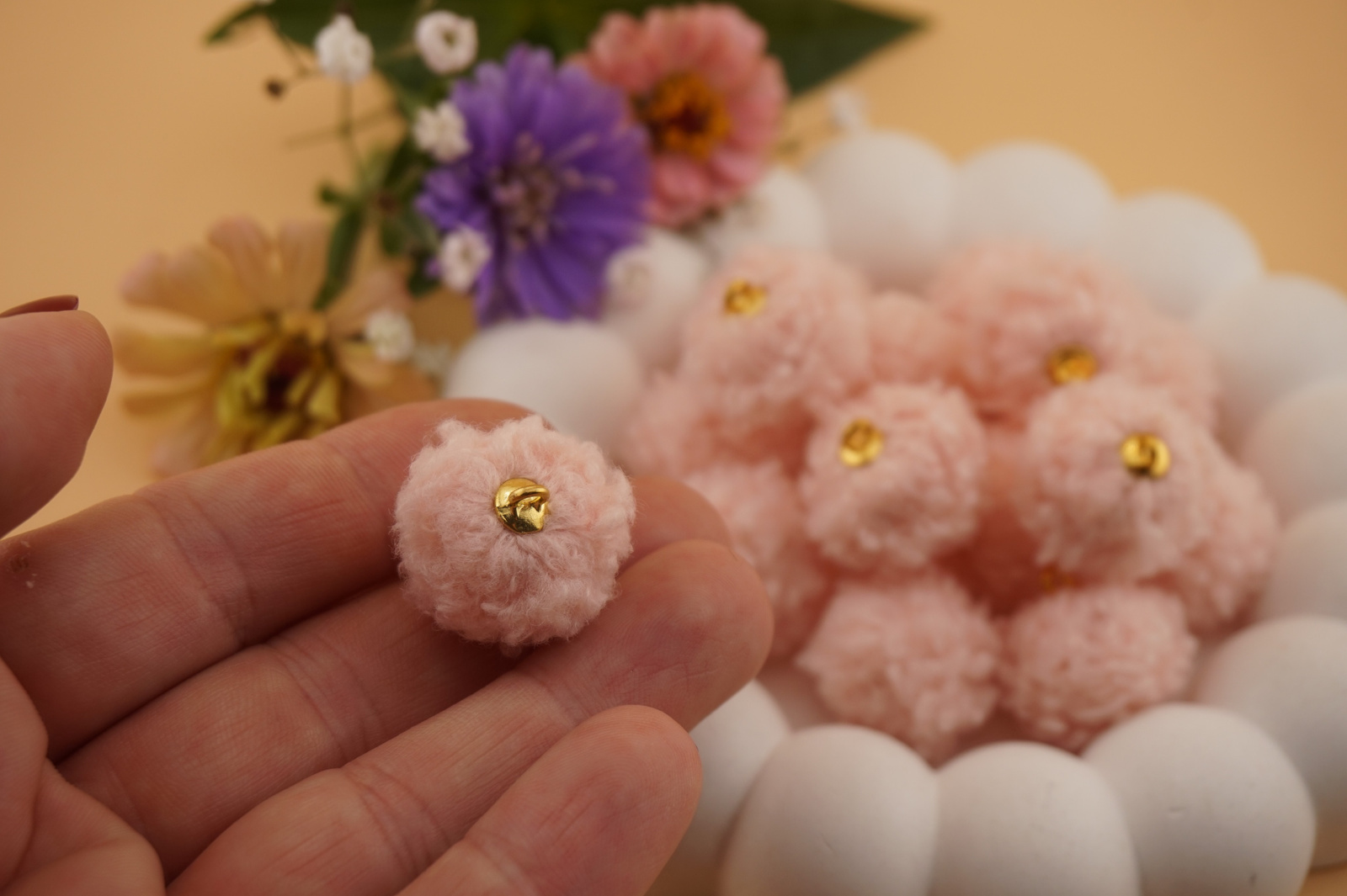 Zawieszki pompony z metalowym uchwytem to prosty sposób na dodanie lekkości, koloru i przyjemnej w dotyku faktury do biżuterii handmade.