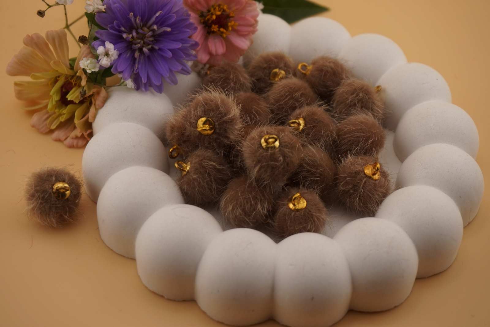 Zawieszki pompony z metalowym uchwytem to lekkie i efektowne ozdoby, które dodają biżuterii miękkości i koloru. Dzięki praktycznemu uchwytowi łatwo je zamocować w kolczykach, bransoletkach czy naszyjnikach handmade.
