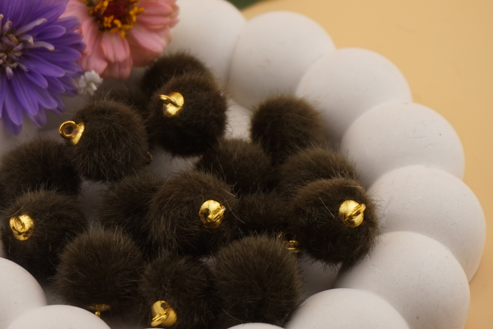 Zawieszki pompony z metalowym uchwytem – kolorowe dodatki do biżuterii