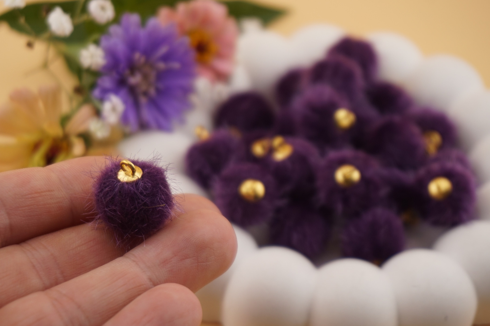 Zawieszki pompony z metalowym uchwytem to prosty sposób na dodanie lekkości, koloru i przyjemnej w dotyku faktury do biżuterii handmade.