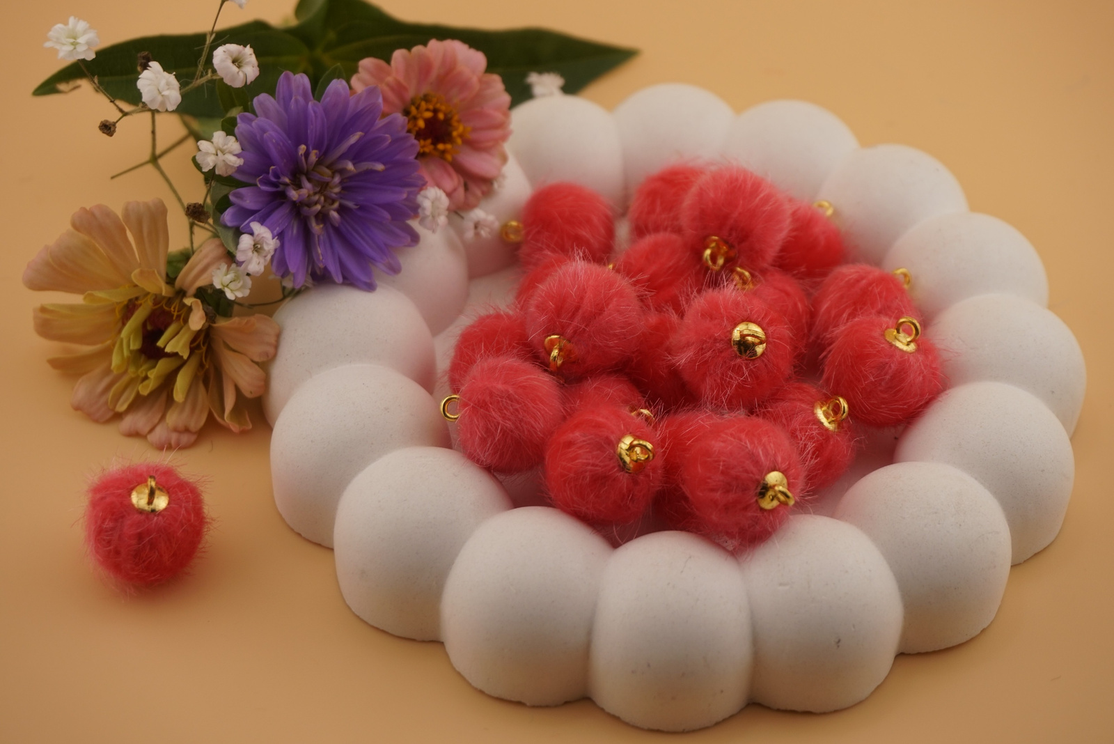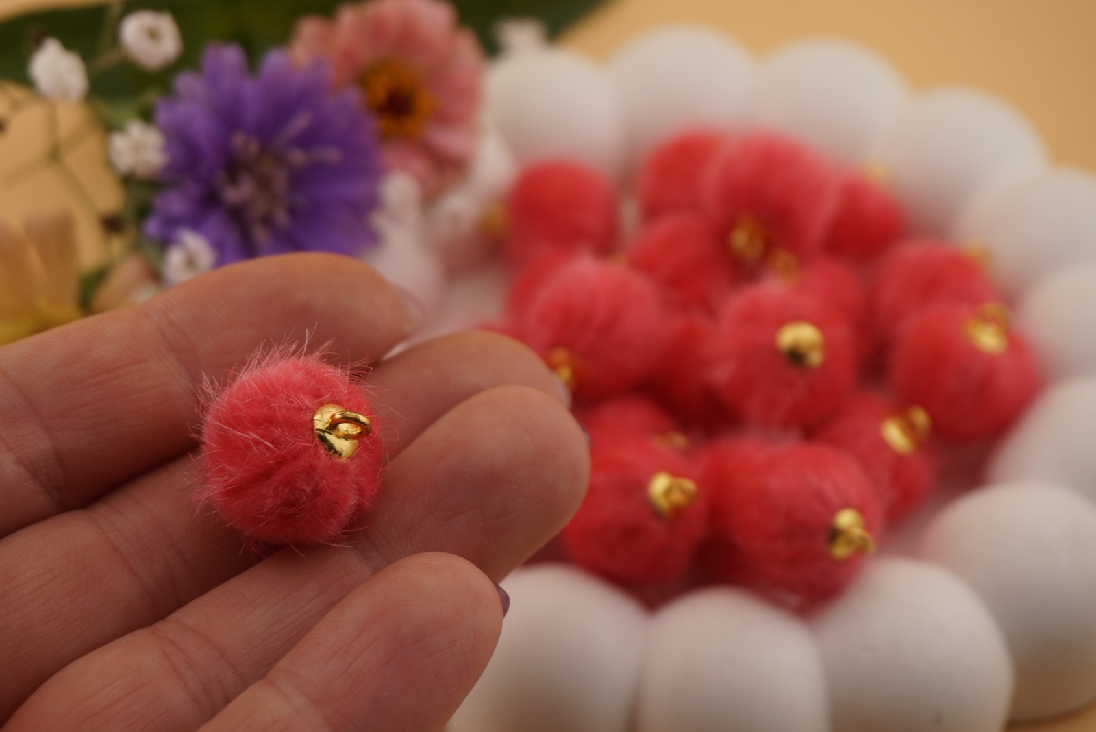 Zawieszki pompony z metalowym uchwytem to prosty sposób na dodanie lekkości, koloru i przyjemnej w dotyku faktury do biżuterii handmade.