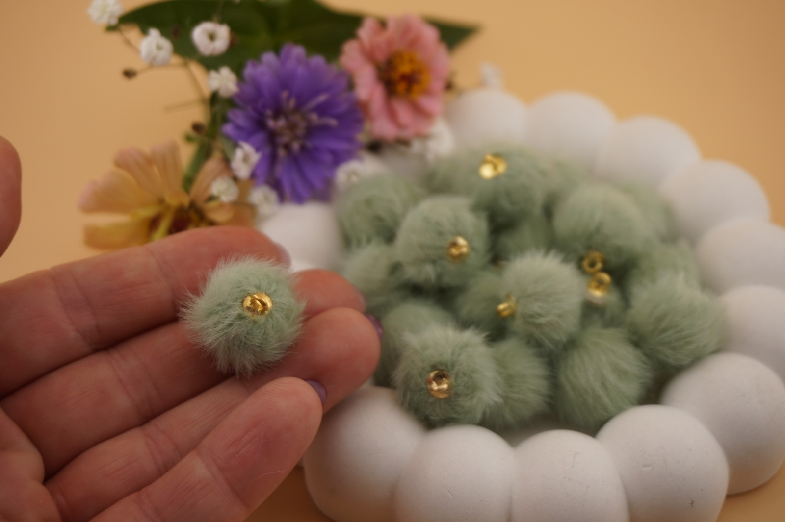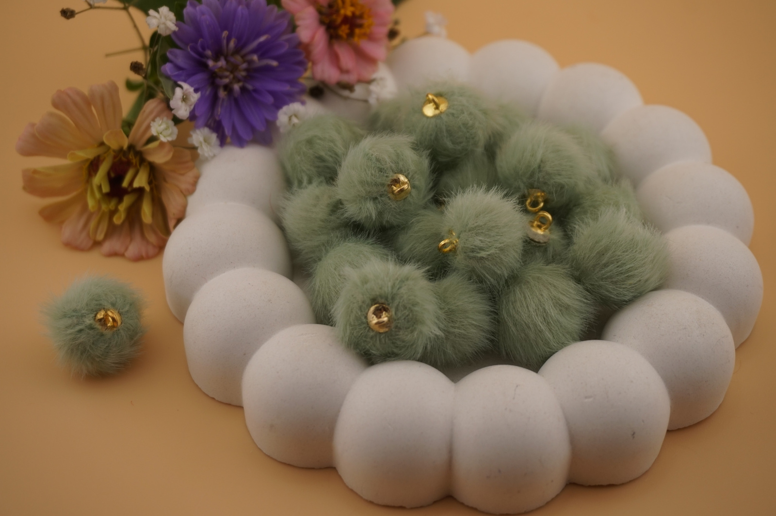 Zawieszki pompony z metalowym uchwytem to prosty sposób na dodanie lekkości, koloru i przyjemnej w dotyku faktury do biżuterii handmade.