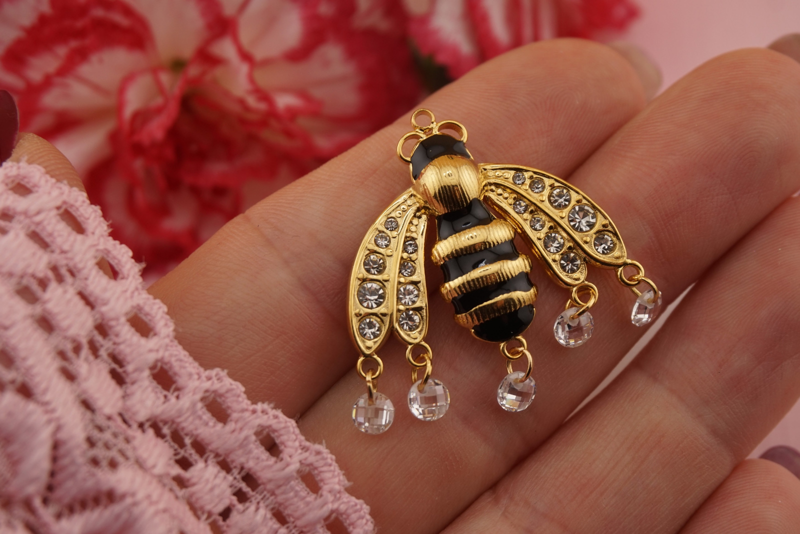 Pszczoła z cyrkoniami / zawieszka ze stali chirurgicznej / 31x29mm / złoty / 1szt