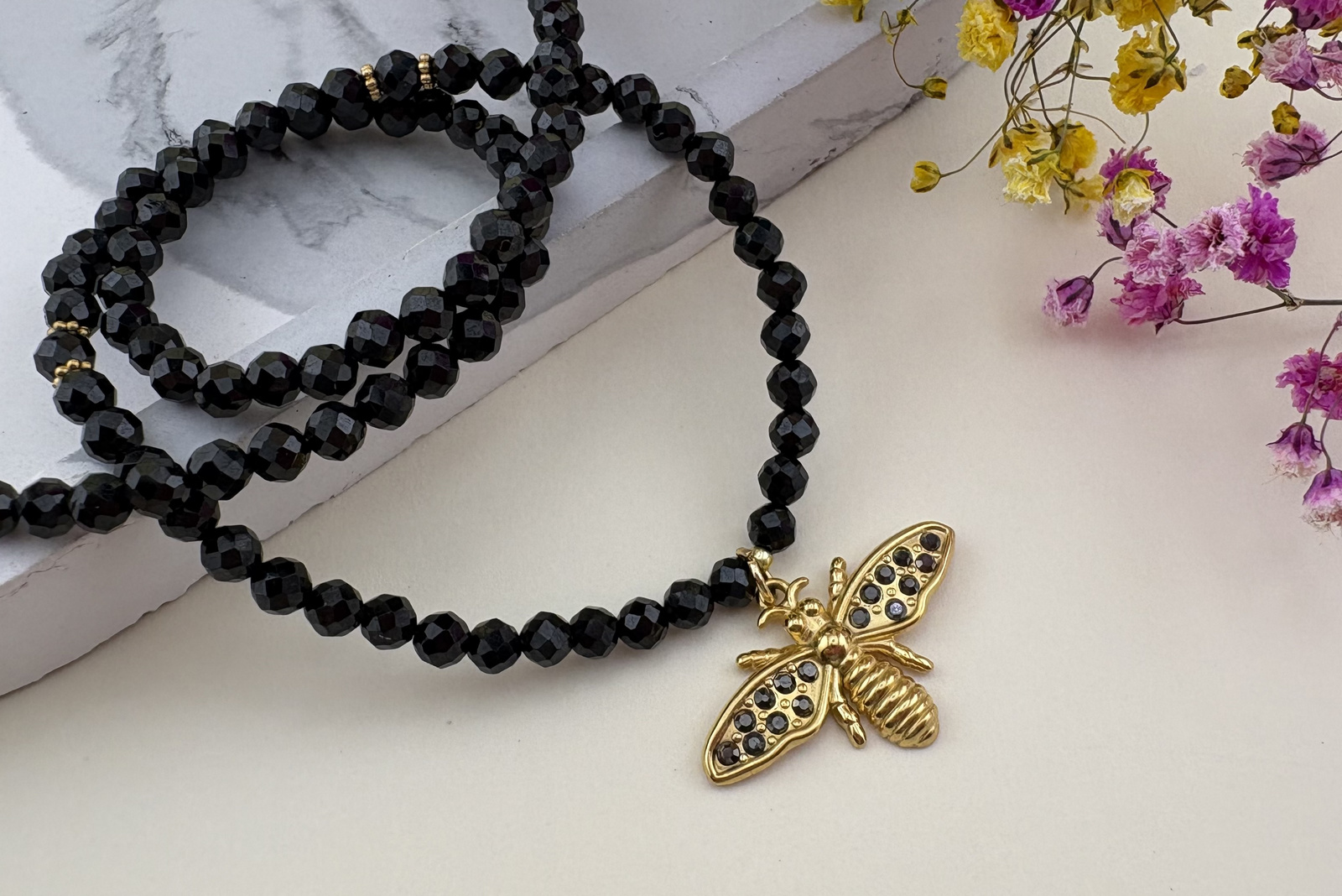 Pszczoła z czarnymi cyrkoniami / zawieszka ze stali chirurgicznej / 28x18mm / złoty / 1szt