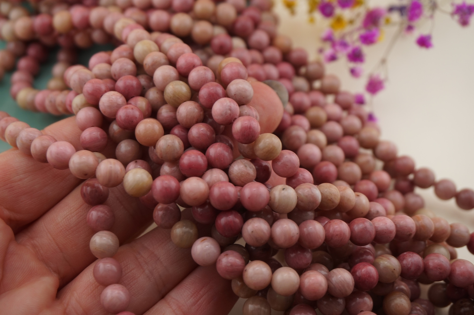 Rodonit kula gładka – naturalny róż z eleganckim kontrastem