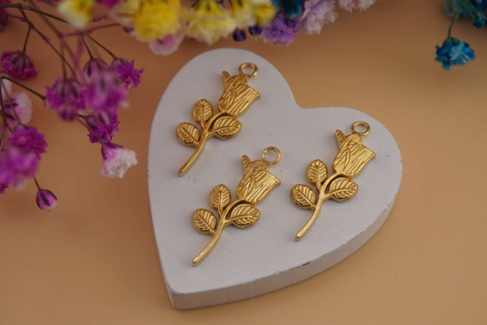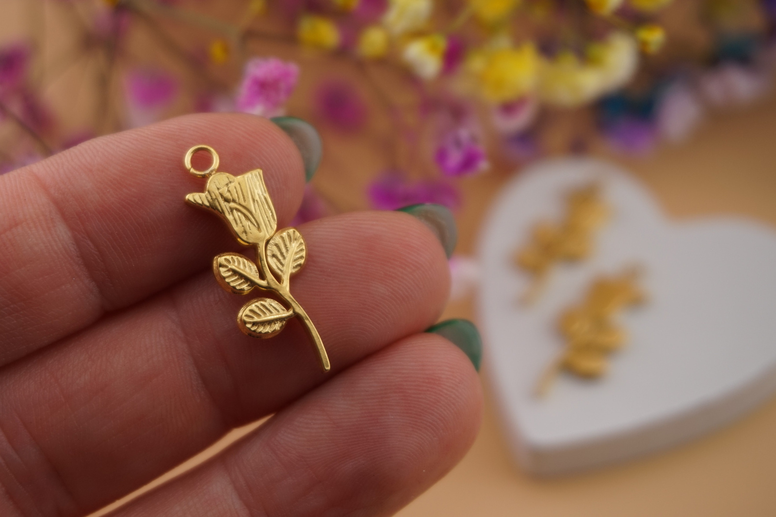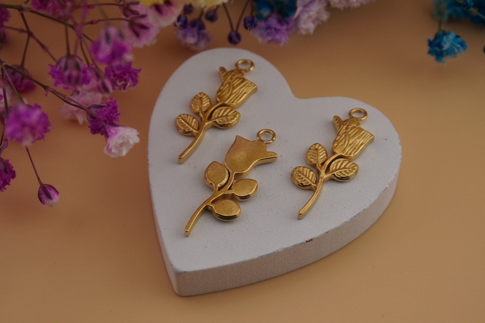 Róża / zawieszka ze stali chirurgicznej / 10x25mm / złoty / 1szt
