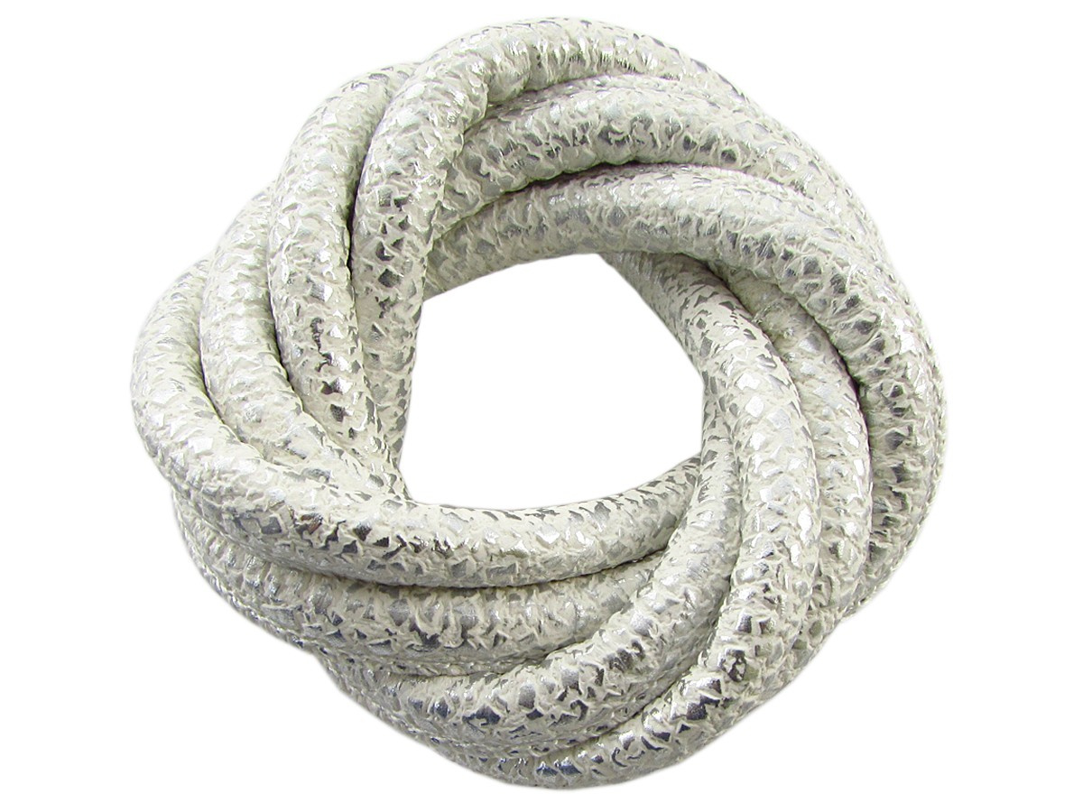 Rzemień ekologiczny, szyty, metalic / biały / crackle / 5x7mm / 1m