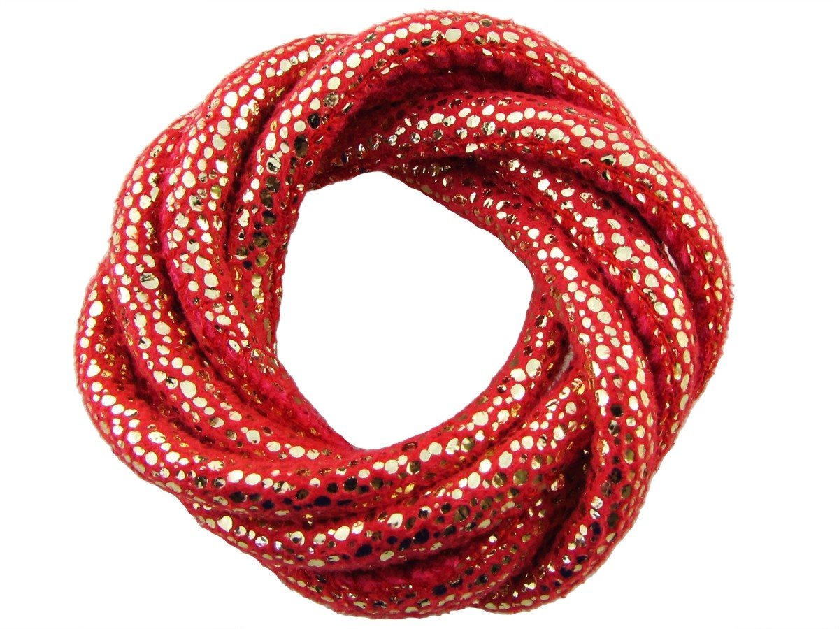 Rzemień ekologiczny, szyty, złote świecące cętki 5x7mm / koralowy / 20cm