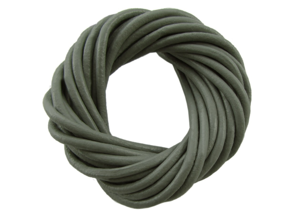 Rzemień naturalny / okrągły / 1mm / kolor szaro-zielony / 2m