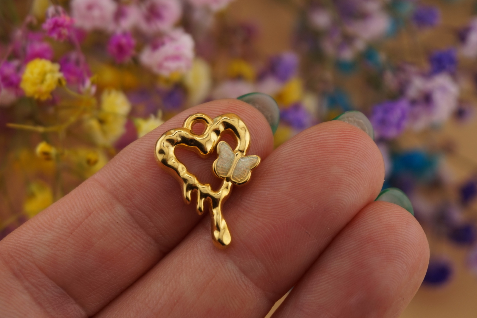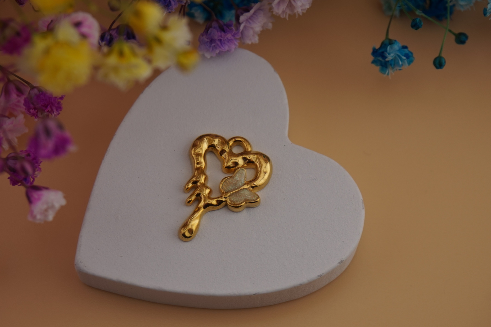 Serce z motylkiem białym / zawieszka ze stali chirurgicznej / 21x15mm / złoty / 1szt
