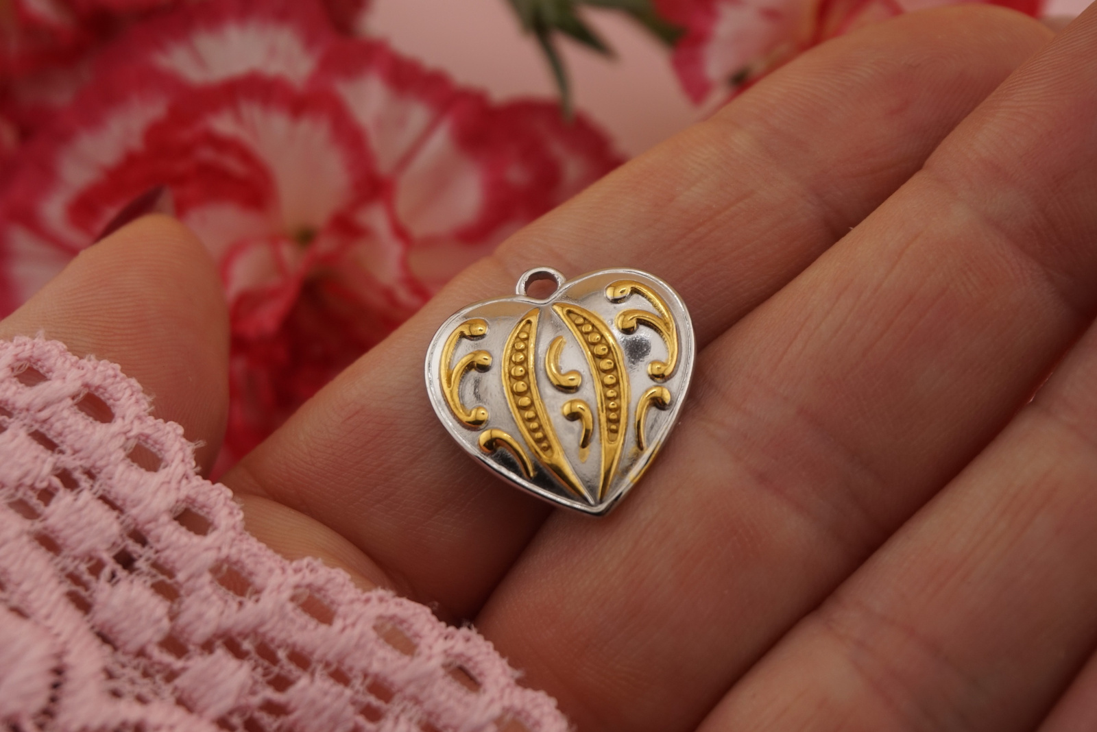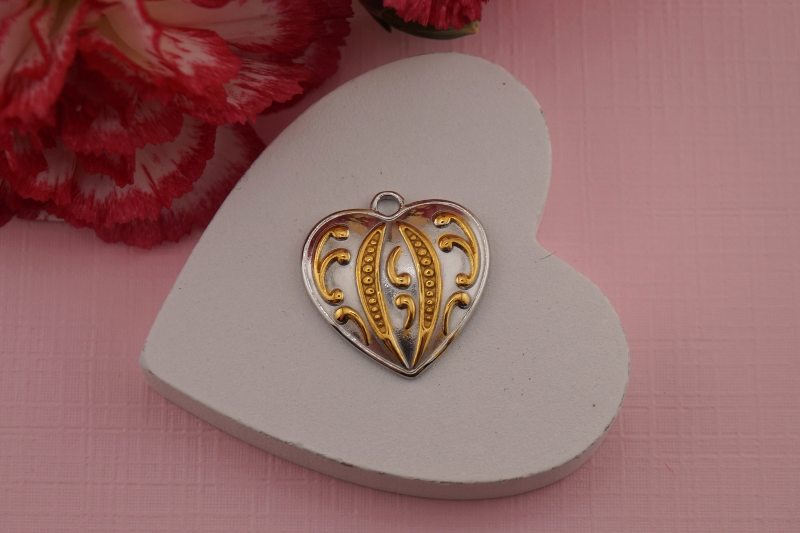 Serce złoto - srebrne / zawieszka stal chirurgiczna / 19x20mm / 1szt