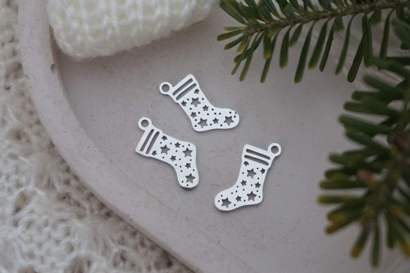 Skarpetka w gwiazdki / zawieszka / stal chirurgiczna / 9x16mm / srebrny / 1szt